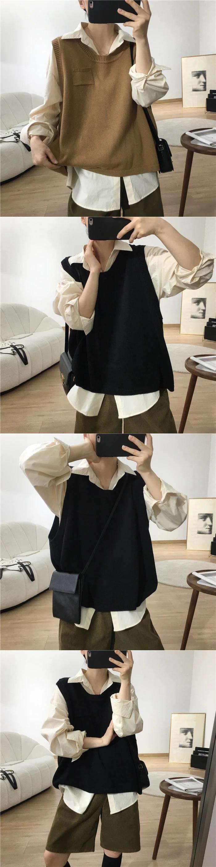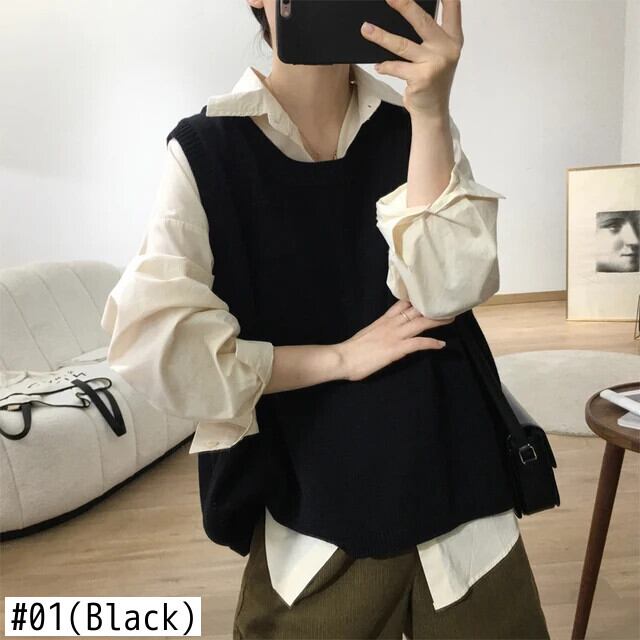 [EWQ] セーターベストノースリーブ緩い弾性プルオーバーニットタンクトップ秋冬 16U5441 エラスティック 伸縮 オータム 秋物 ウィンター 冬物