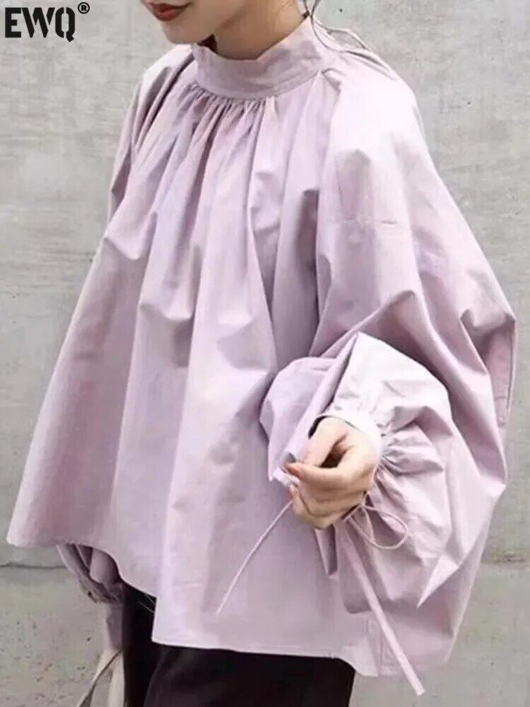 [EWQ] ルーズサイズ紫立ちネック袖口ネクタイ包帯パフノースリーブプルオーバーブラウスシャツ秋冬 オータム 秋物 ウィンター 冬物 パープル