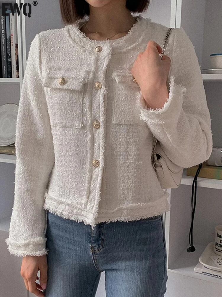 [EWQ] レディース バーズテルツイート ジャケット 長袖 ポケット パッチワーク ジャケット コート 秋冬 16U4190 ロング オータム 秋物 ウィンター 冬物