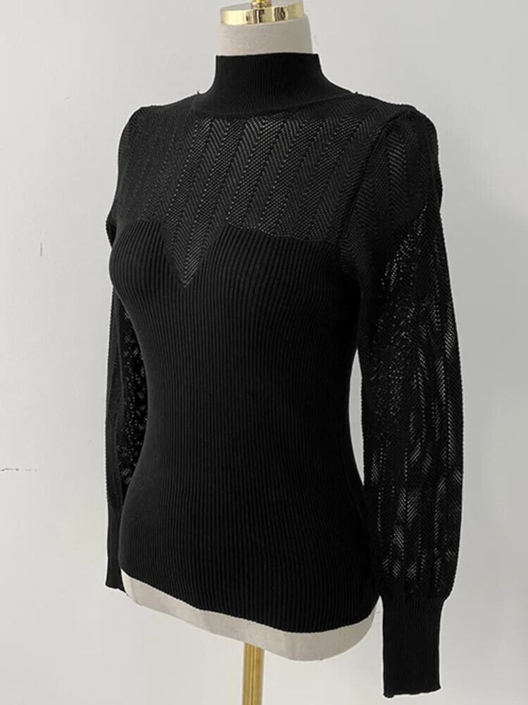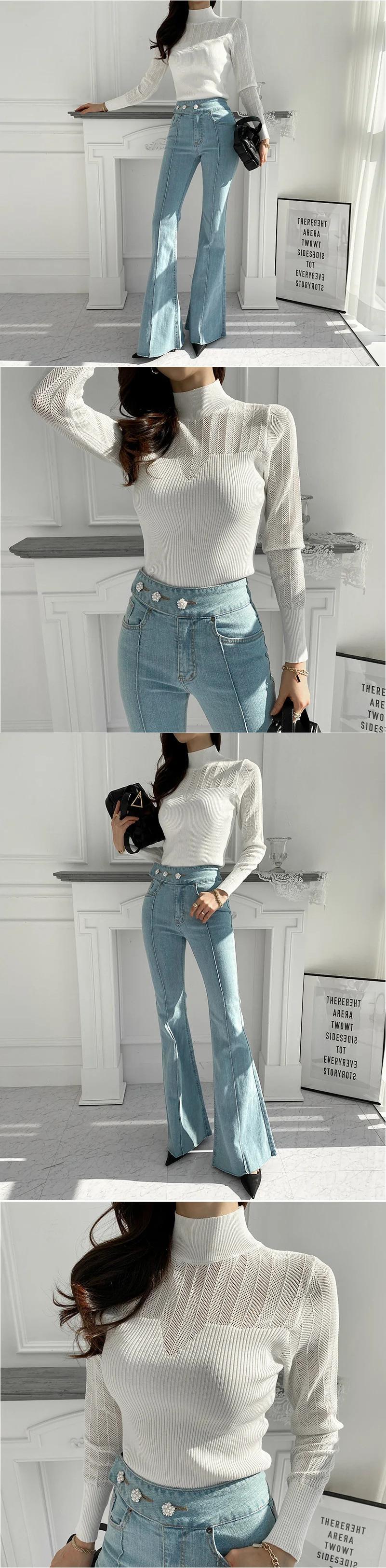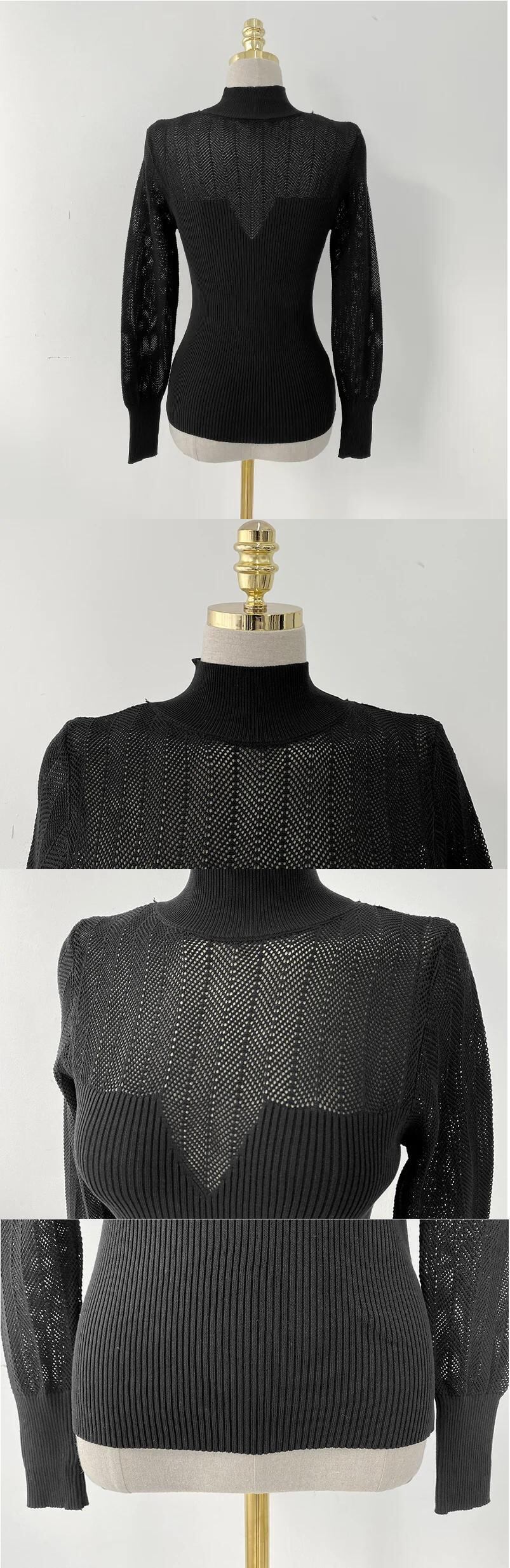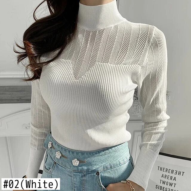 [EWQ] ホワイトセータータートルネックアウト視点弾性プルオーバーニットトップ秋冬 6U5073 エラスティック 伸縮 オータム 秋物 ウィンター 冬物