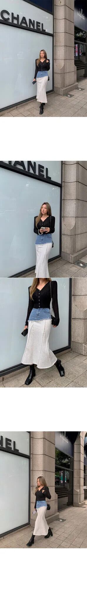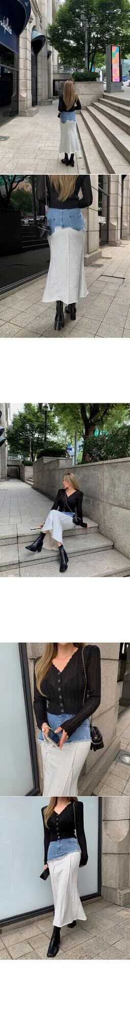 [EWQ] 不規則パッチワークデニムマーメイドスカートスリムウエスト弾性 A ラインスカート秋冬 16U5219 エラスティック 伸縮 オータム 秋物 ウィンター 冬物 Aライン