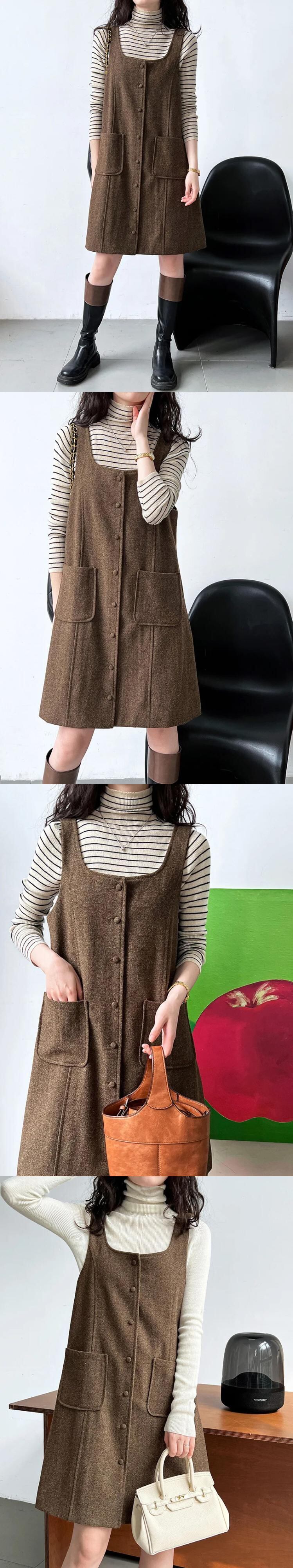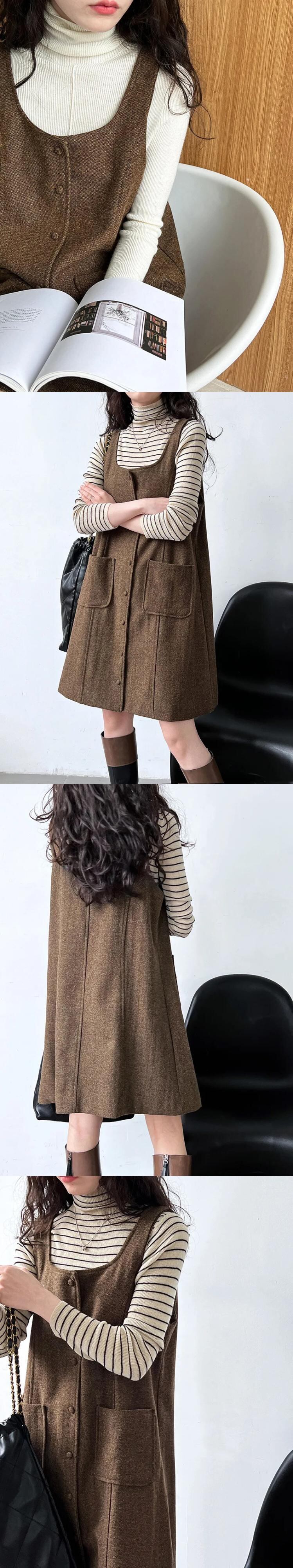 [EWQ] ウールシングルブレストベストドレス秋冬トレンドダブルポケットスプライシング暖かさドレス Vestido オータム 秋物 ウィンター 冬物