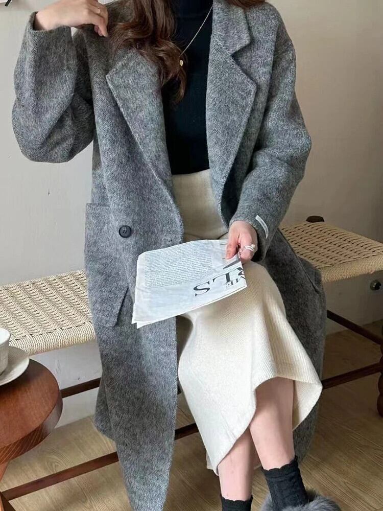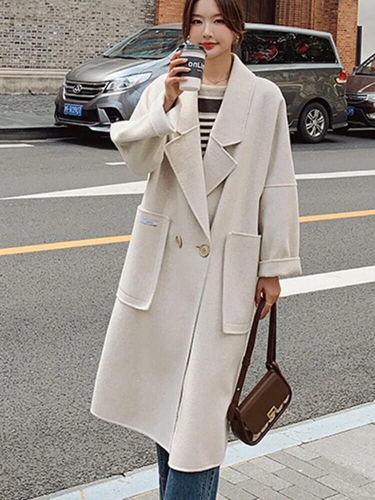 [EWQ] グリーン両面ウールコート レディース 秋冬 タイド ダブルブレスト カシミヤ 厚手 オーバーコート 16U5360 オータム 秋物 ウィンター 冬物