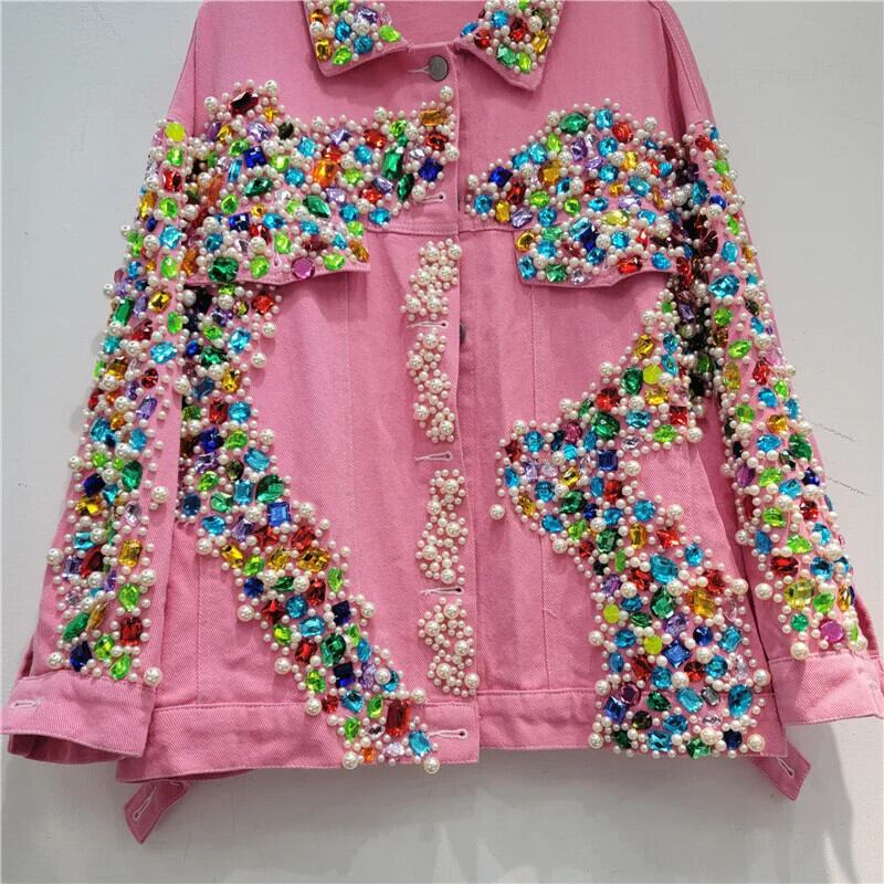 [EWQ] ストリートスタイルカラフルダイヤモンドパッチワークラペルシングルブレストデニムコートジャケット秋 オータム 秋物