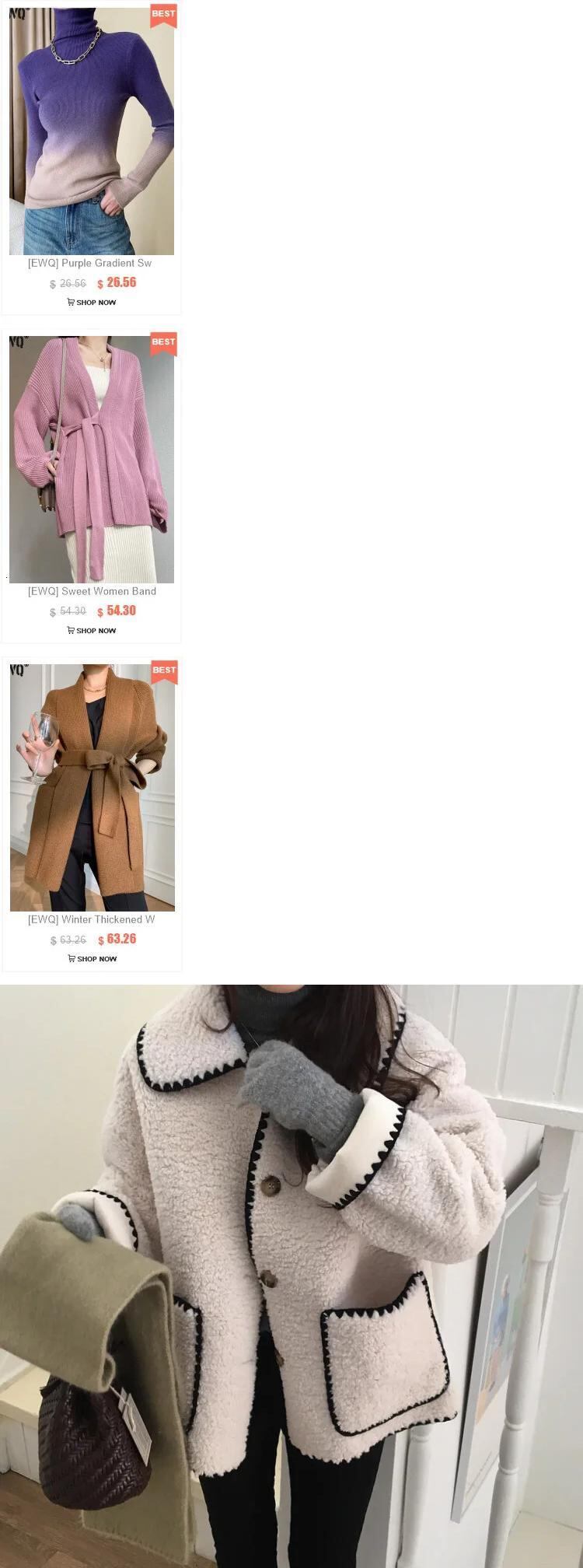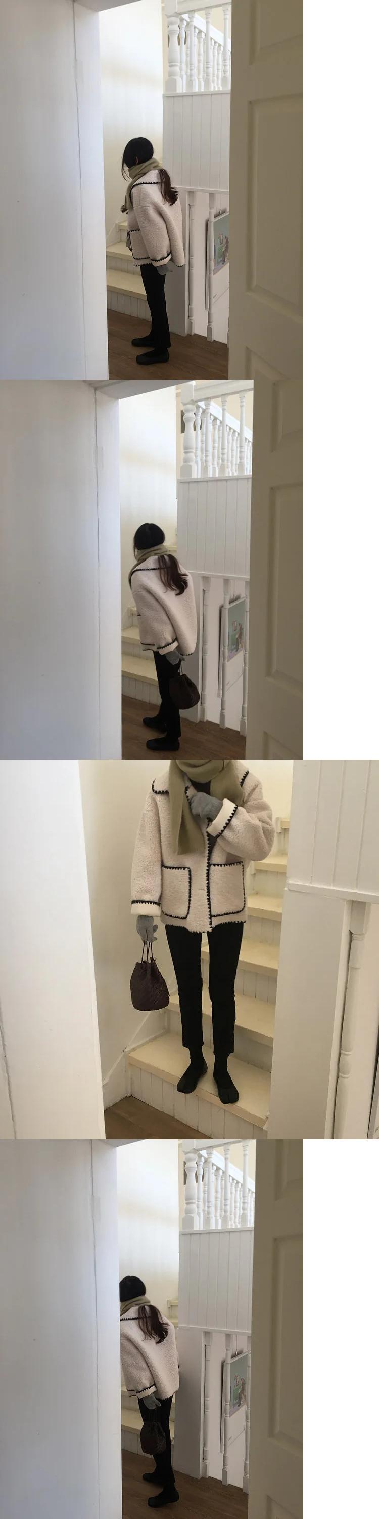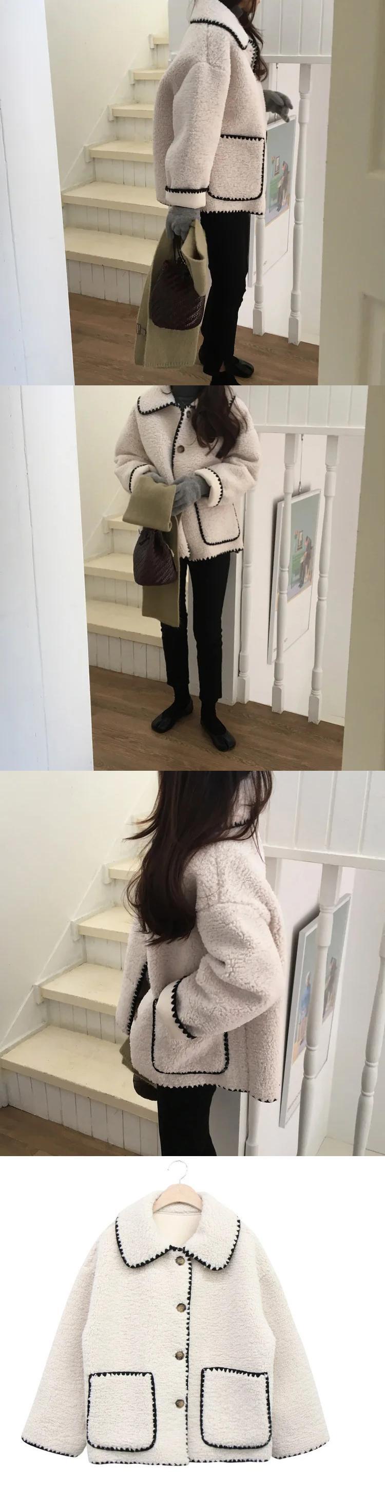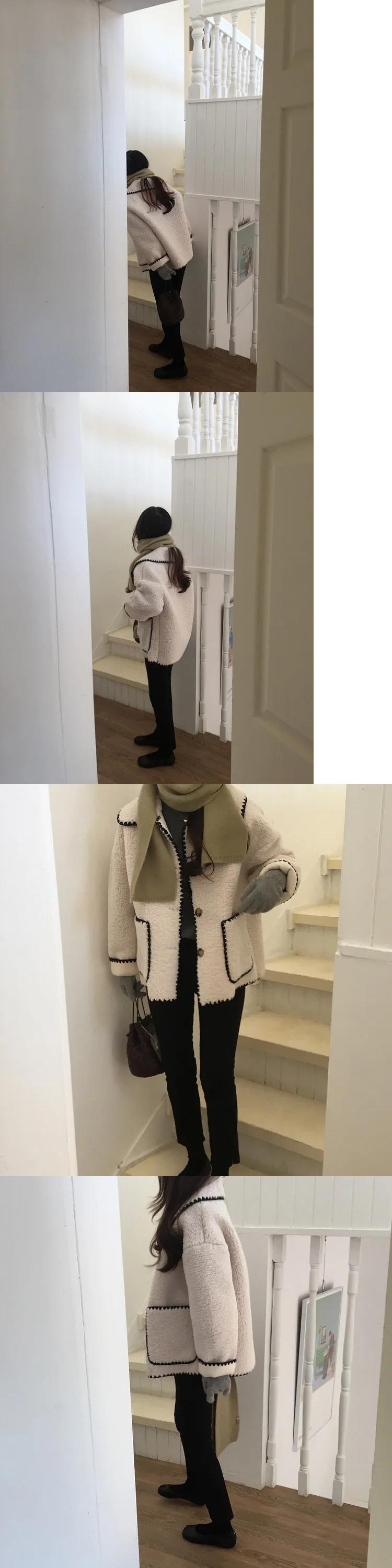 [EWQ] コントラストカラーエッジラペルシングルブレスト厚手暖かいラムウールコートルーズウールブレンドジャケット秋 オータム 秋物