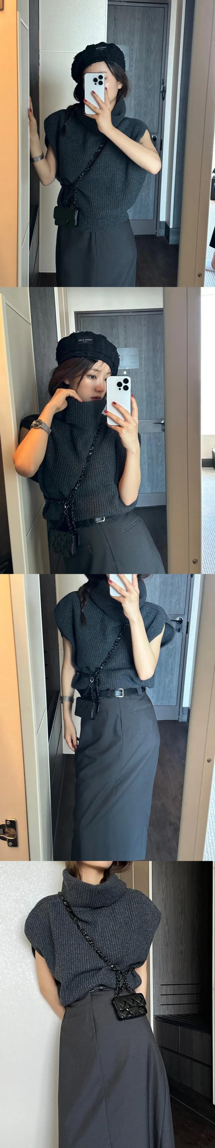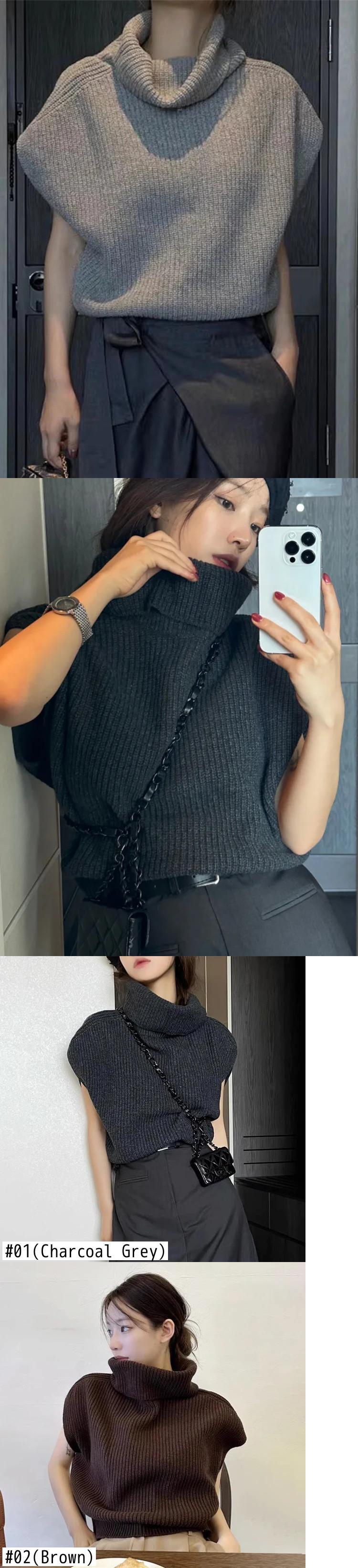 [EWQ] タートルネックプルオーバーニットタンクノースリーブルーズセーターベスト厚い秋冬トップ 16U4890 オータム 秋物 ウィンター 冬物
