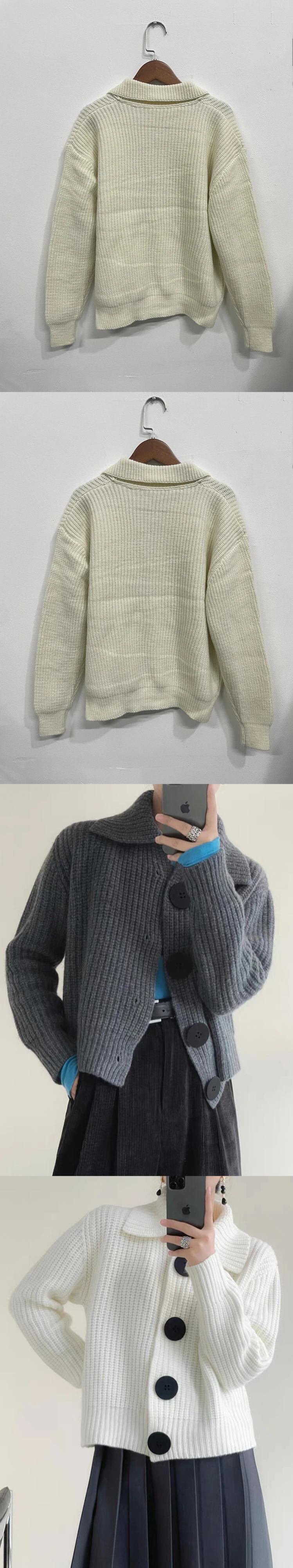 [EWQ] ラペルオレンジカーディガンコートシングルブレストルーズセータージャケット秋冬潮ニット 16U3196 オータム 秋物 ウィンター 冬物