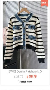 [EWQ] コントラストカラー トップステッチ O ネック プルオーバー セーター ルーズ 長袖 ニット トップス 秋 16U5521 ロング オータム 秋物 Oネック