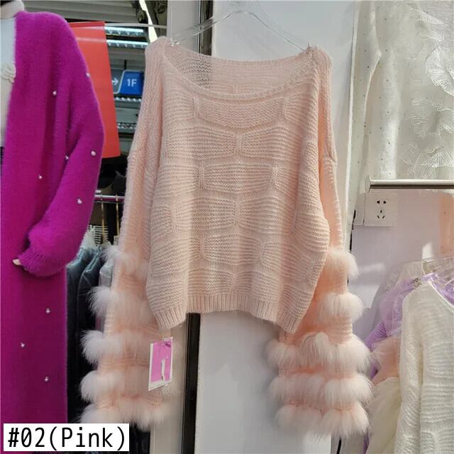 [EWQ] フェイクファー パッチワーク ゆったり O ネック 厚手 暖かい プルオーバー セーター 長袖 ニット トップス 秋冬 ロング オータム 秋物 ウィンター 冬物 Oネック