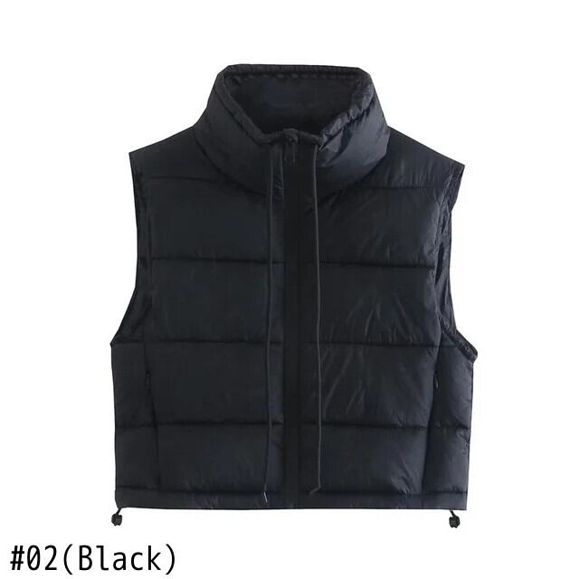 [EWQ] チョッキ ブラック パープル パッチワーク スタンドカラー ノースリーブ ジッパー レディース 冬 秋 ベスト 16U4265 オータム 秋物 ウィンター 冬物