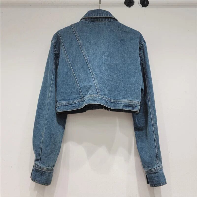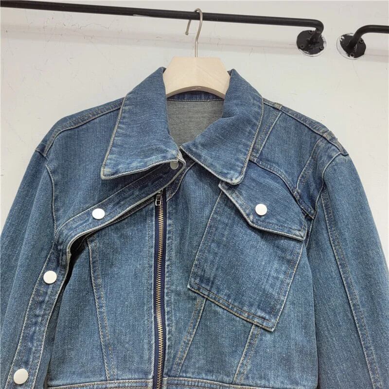 [EWQ] 不規則シングルブレスト長袖デニムジャケットショートジップアップジャケットストリート秋冬コート 16U4231 ロング オータム 秋物 ウィンター 冬物