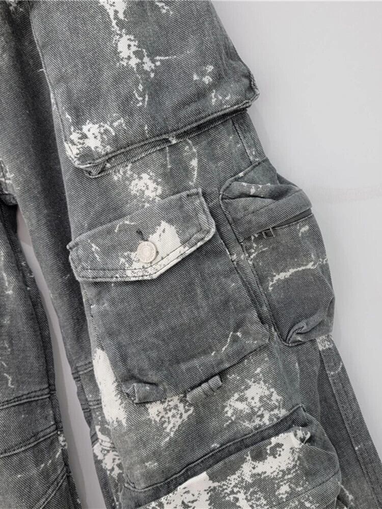 [EWQ] ストリート コントラストカラー 迷彩 ワークパンツ ルーズストレート ワイドレッグパンツ 秋 16U5617 オータム 秋物 ワイドパンツ