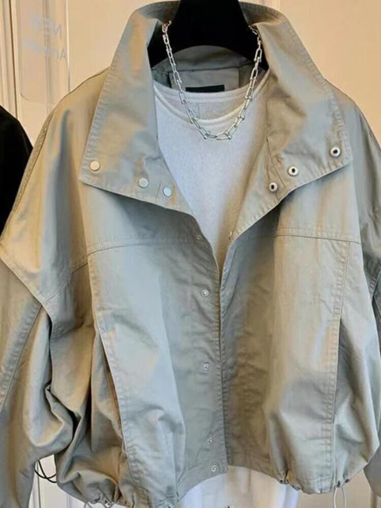 [EWQ] 裾巾着弾性ジャケットフェイクツーピース長袖ボタンアップルーズ生き抜くコート秋冬 6U4967 ロング エラスティック 伸縮 オータム 秋物 ウィンター 冬物