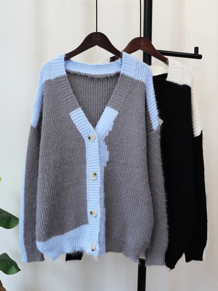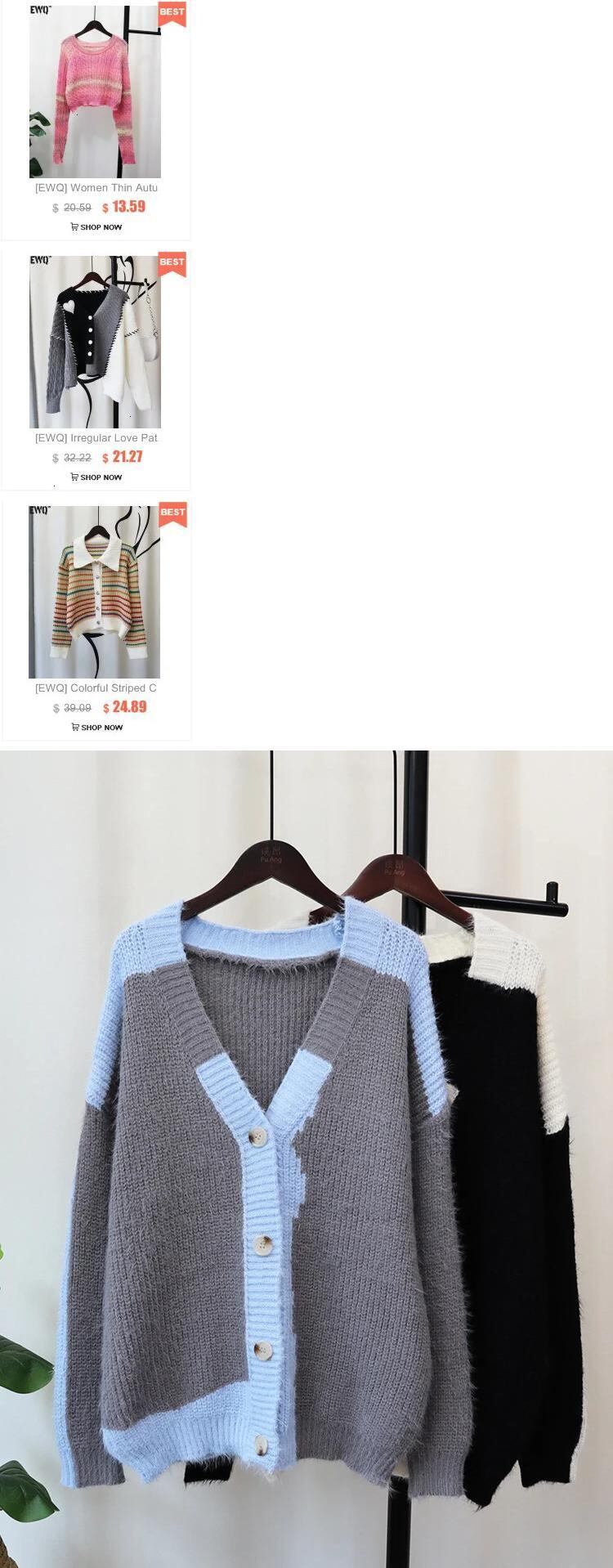 [EWQ] ミンク カシミア コントラスト カーディガン コート 薄手 秋冬 タイド 長袖 シングルブレスト セーター ジャケット 16U3894 ロング オータム 秋物 ウィンター 冬物