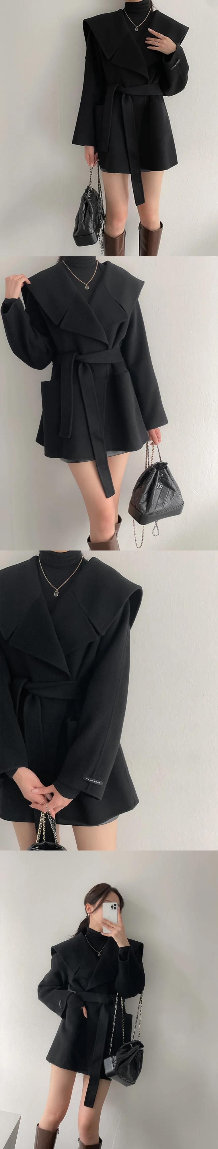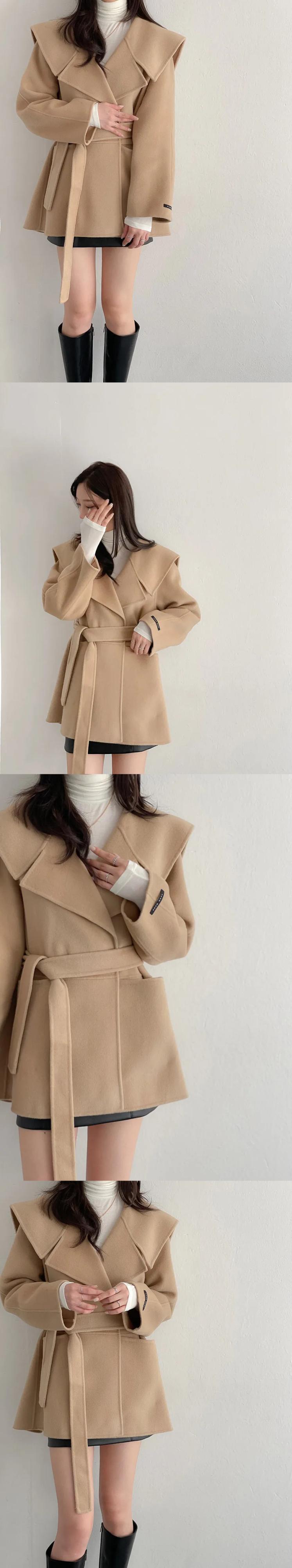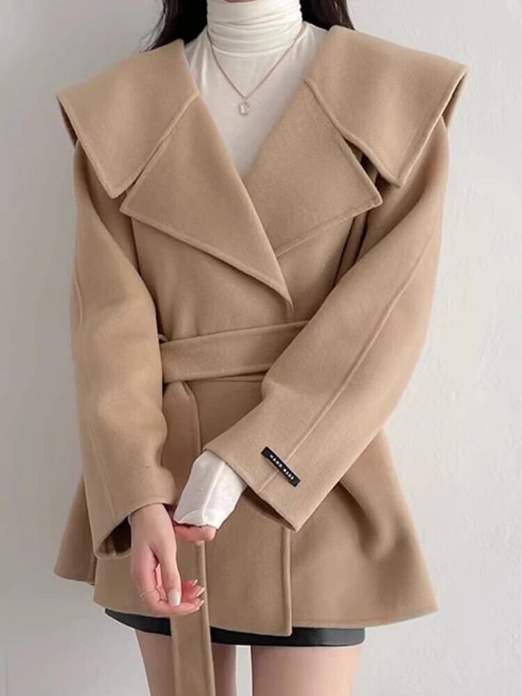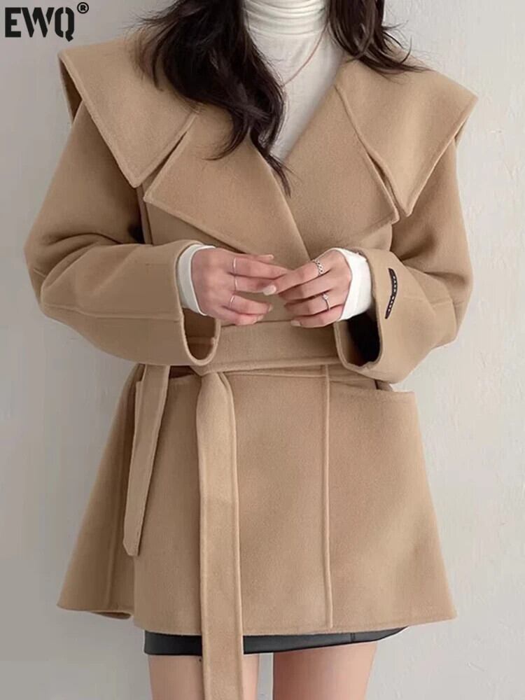 [EWQ] セーラー襟レースアップウールコート長袖暖かい冬ウールジャケット秋 16U5314 ロング オータム 秋物 ウィンター 冬物