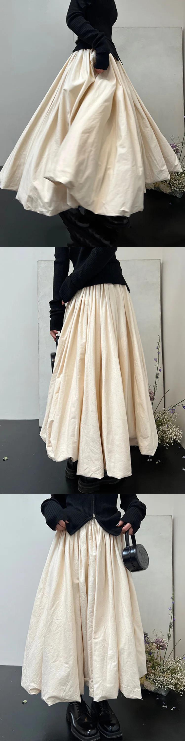 [EWQ] ウエストスリム ミドル丈 万能クラウドハーフ パフィー アンブレラスカート レディース ボトムス 春秋 16U5762 スプリング 春物 オータム 秋物