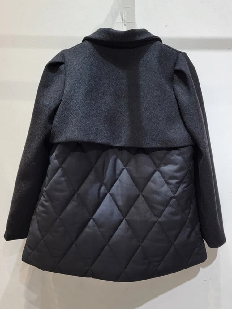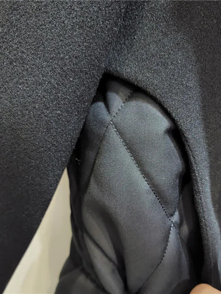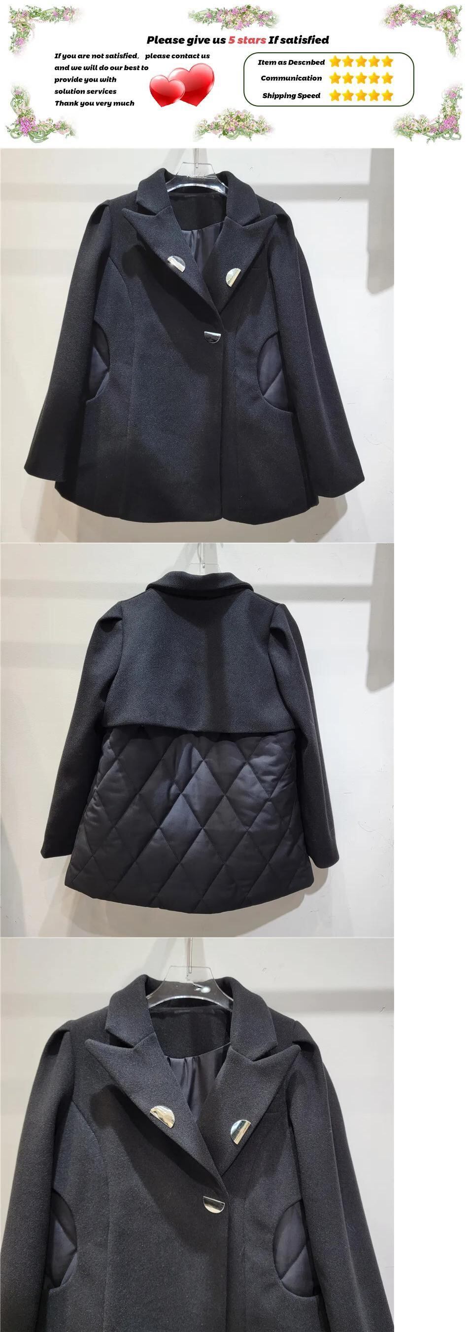 [EWQ] 冬秋厚い黒スプライシングスーツカラーコートジャケットアウター 16U5745 ブラック オータム 秋物 ウィンター 冬物