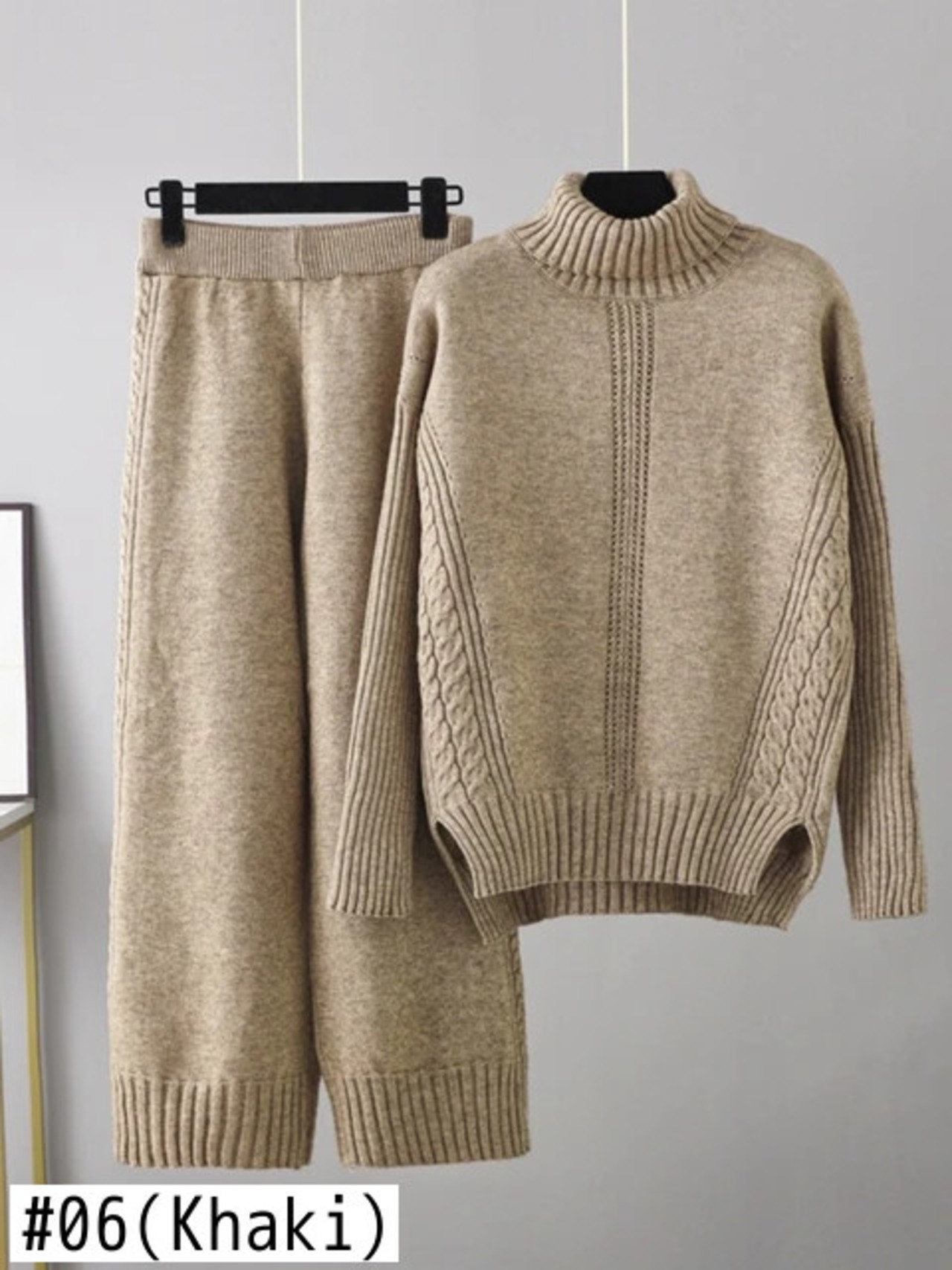 [EWQ] ネックプルオーバー肥厚ニットセーターとパンツセット 2 点セット衣装秋 U5842 オータム 秋物