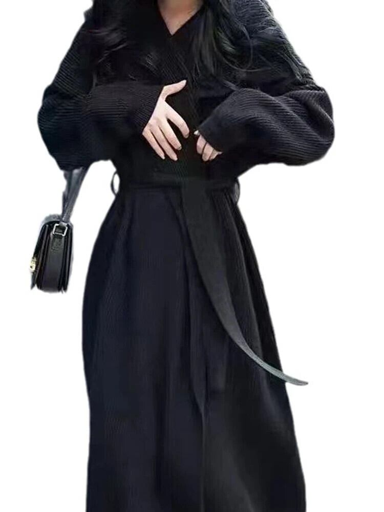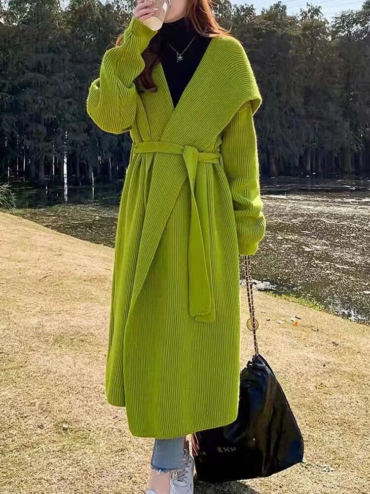 [EWQ] フード付きニット カーディガン コート レディース グリーン 長袖 ルーズ丈 セーター ジャケット 秋冬 6U5347 ロング オータム 秋物 ウィンター 冬物