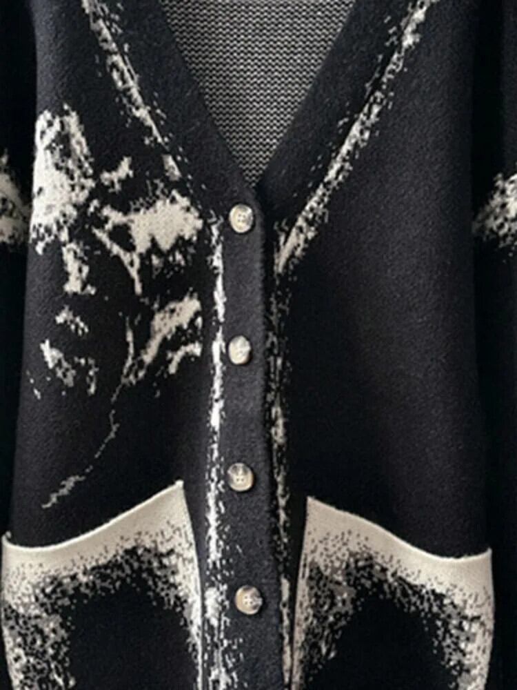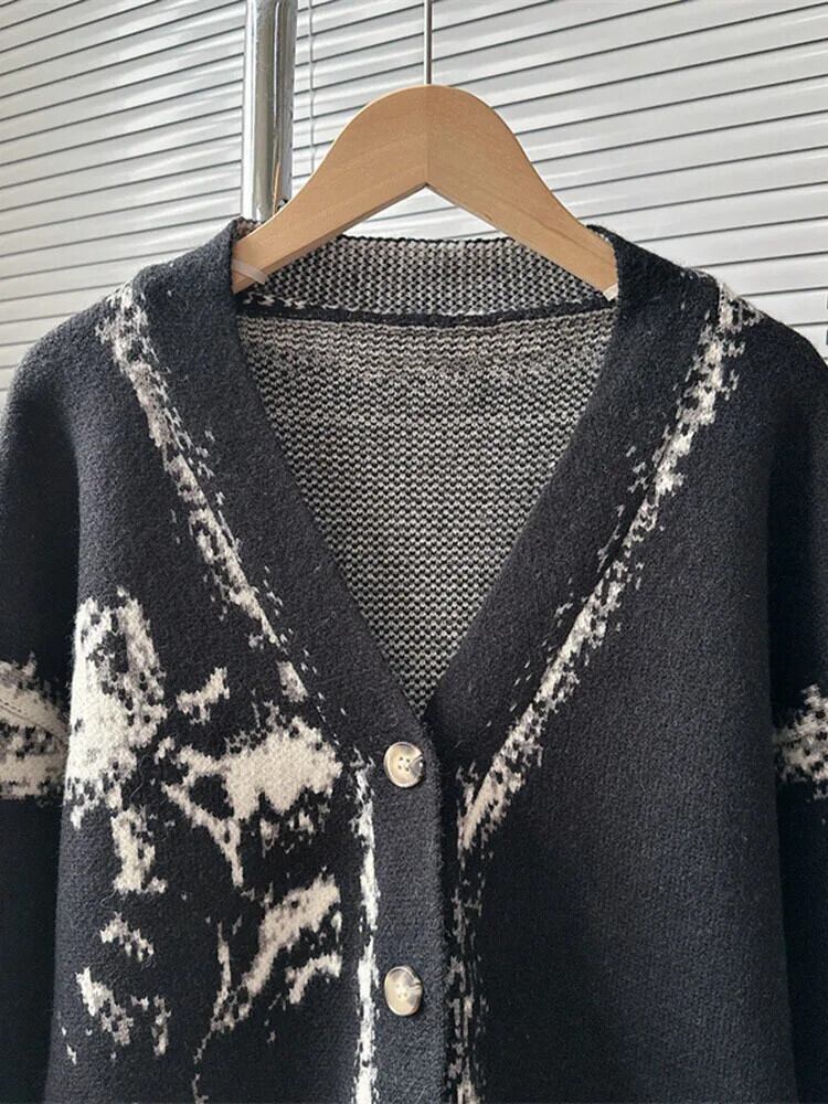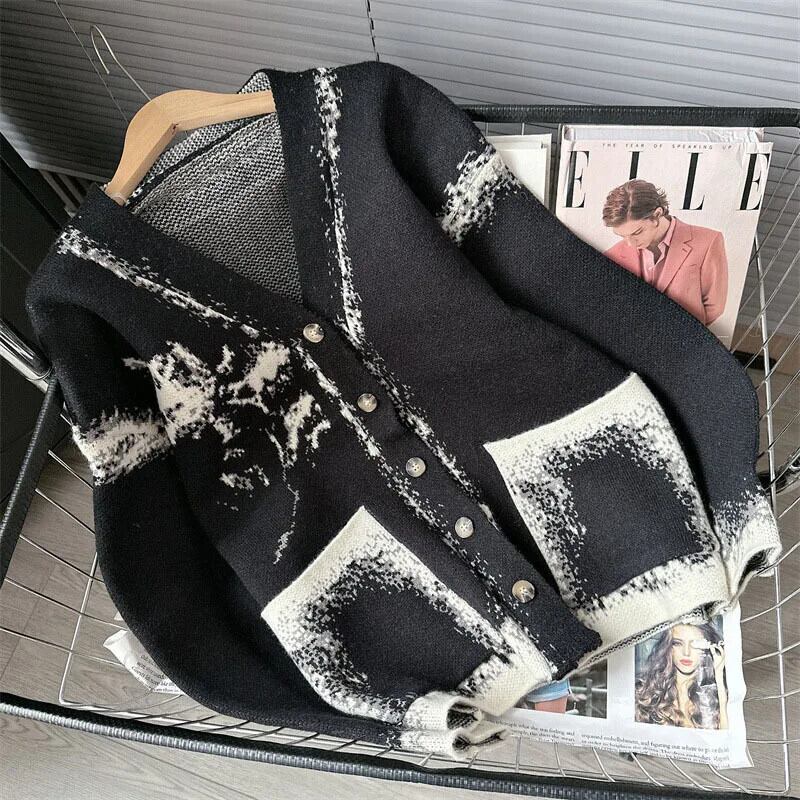 [EWQ] ブラック ホワイト コントラスト カラー ニット カーディガン コート レディース トップス 大きいサイズ アウター 長袖 秋冬 16U5793 ロング オータム 秋物 ウィンター 冬物