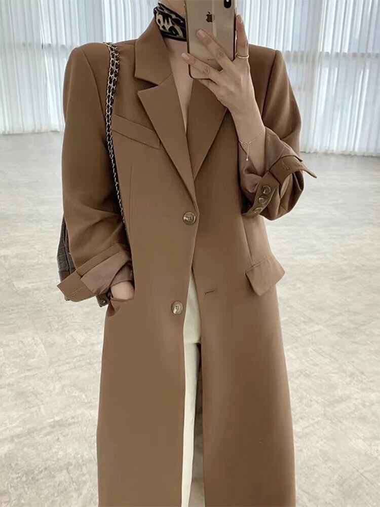 [EWQ] ダブルポケット長ブレザーコートバックスプリットルーズ長袖スーツジャケット秋冬潮 16U3812 ロング オータム 秋物 ウィンター 冬物