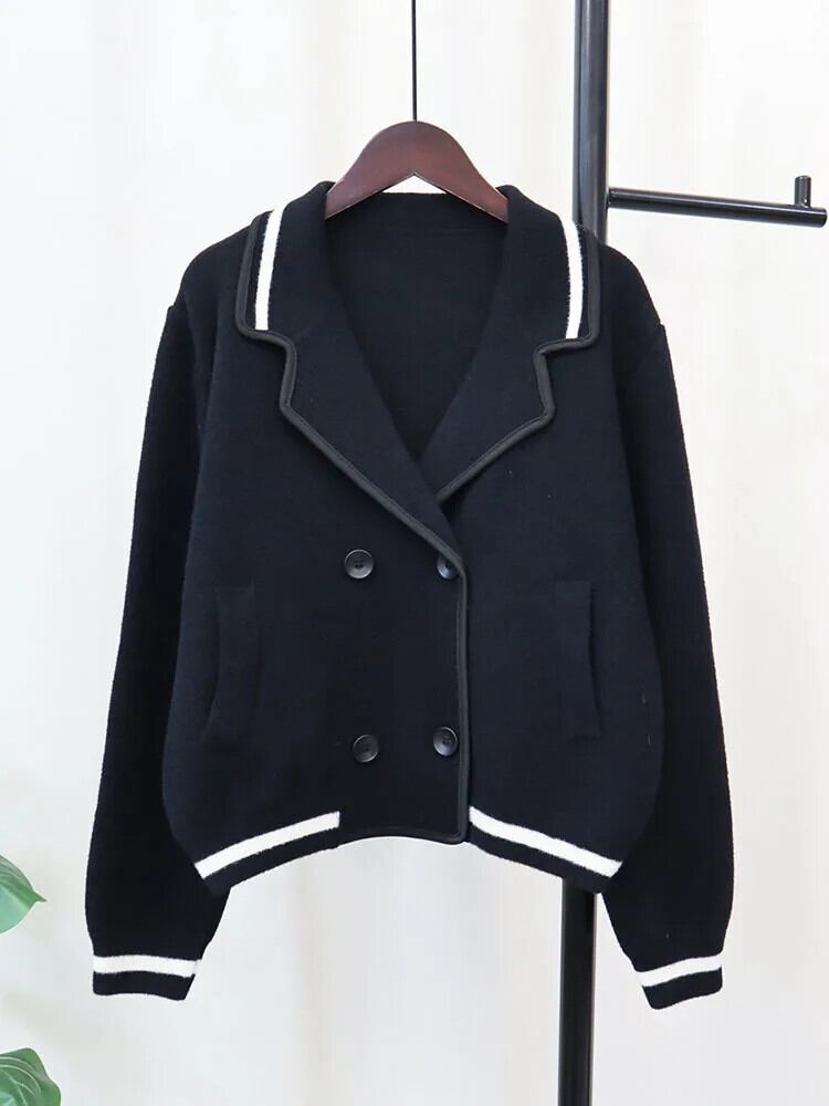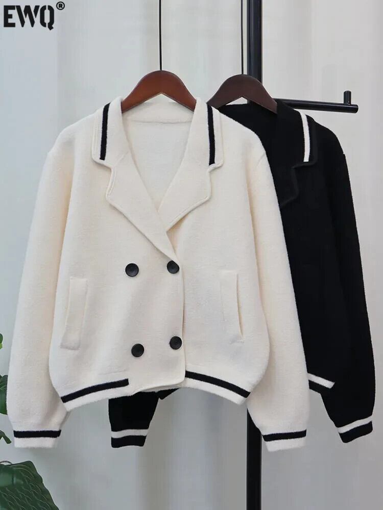[EWQ] スーツ襟コントラスト色気質両面カーディガンニットセーターコートジャケット秋冬 U5984 オータム 秋物 ウィンター 冬物