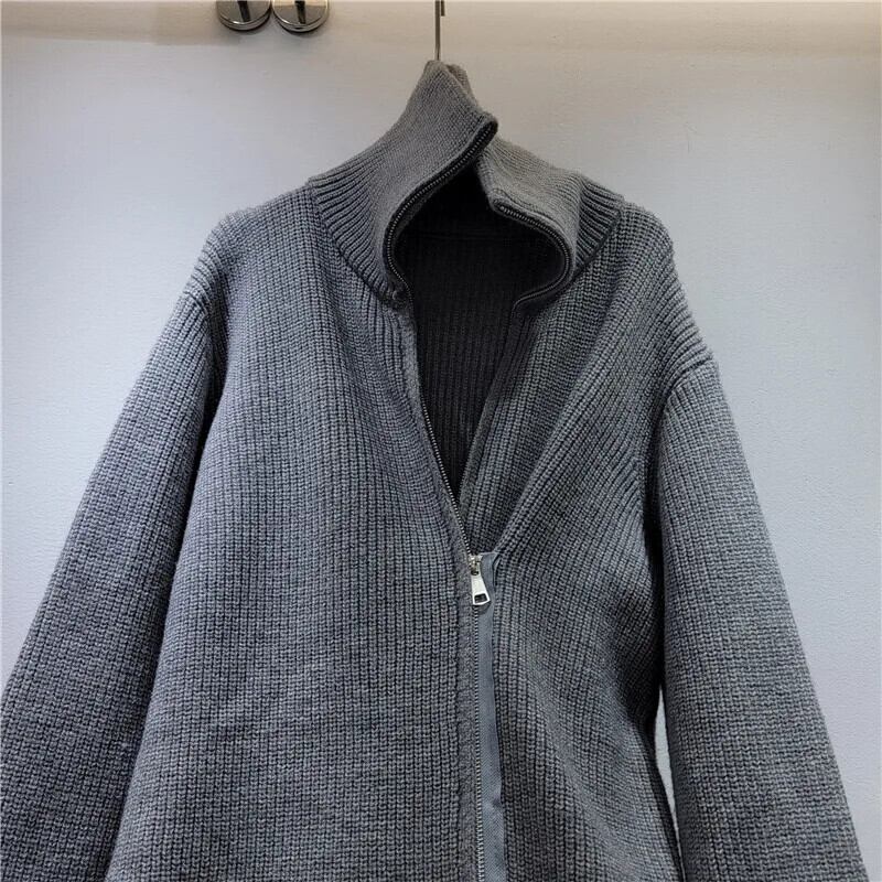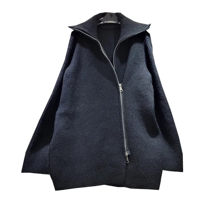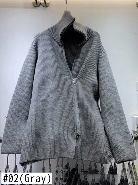 [EWQ] 非対称ダブルジッパーグレーカーディガンコート弾性ニットタートルネックセータージャケット秋冬 16U5292 エラスティック 伸縮 オータム 秋物 ウィンター 冬物