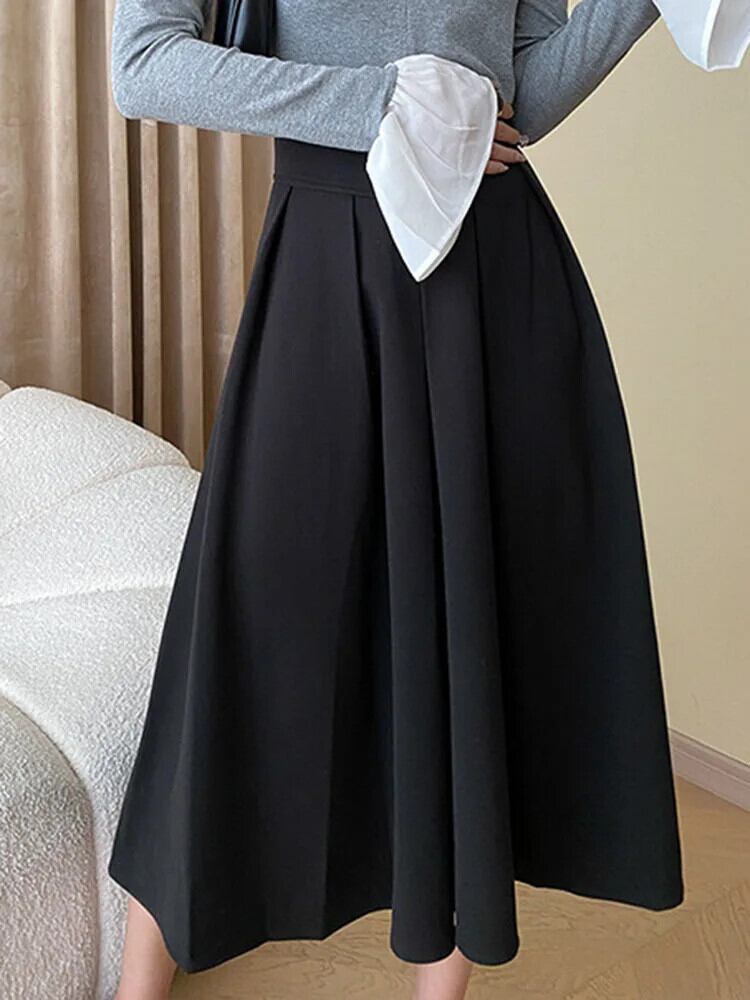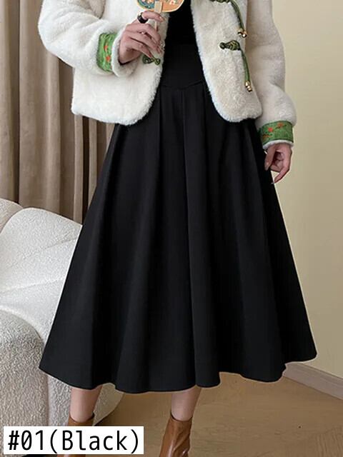 [EWQ]シンプルウエストAラインプリーツスカートブラックコーヒー色オールマッチレディースボトム夏春16U5816 スプリング 春物 サマー 夏物