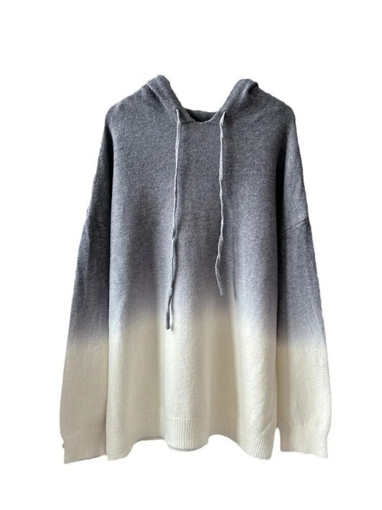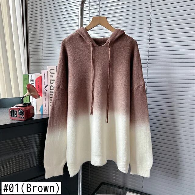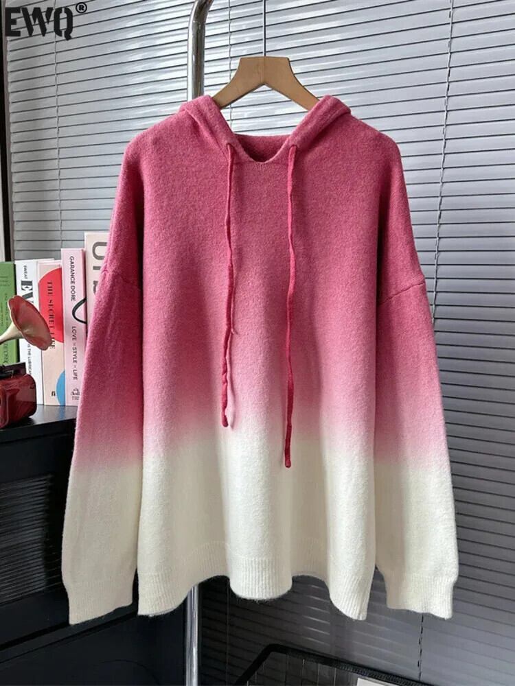 [EWQ] ゆるいグラデーションカラー長袖巾着婦人フード付きプルオーバーセーター秋冬16U6006 ロング オータム 秋物 ウィンター 冬物