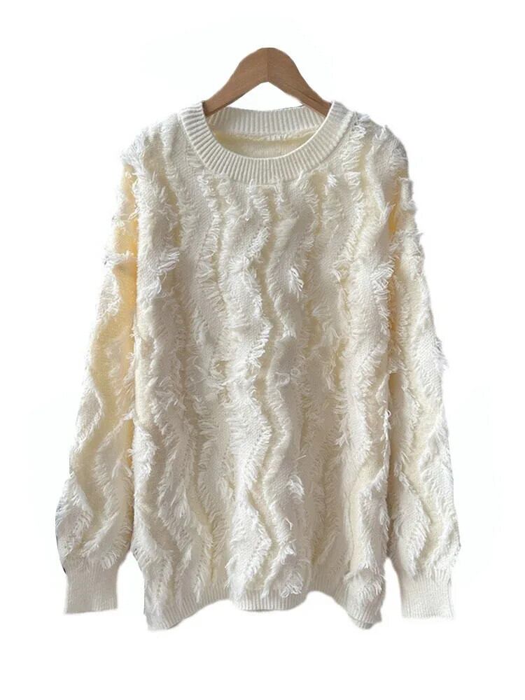 [EWQ] 電話長袖ニットプルオーバー O ネックセーター秋冬黒暖かいトップス 16U5797 ロング ブラック オータム 秋物 ウィンター 冬物 Oネック