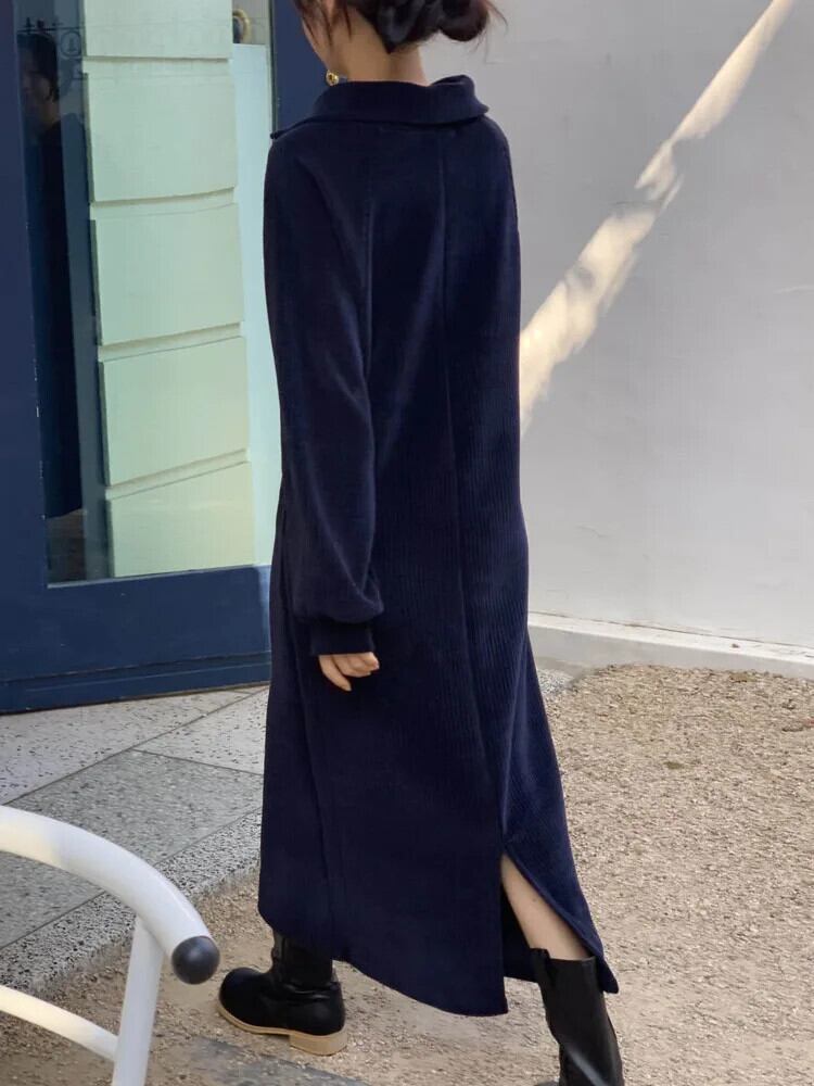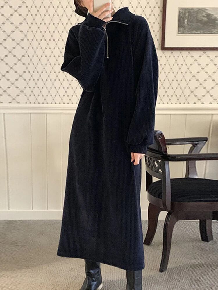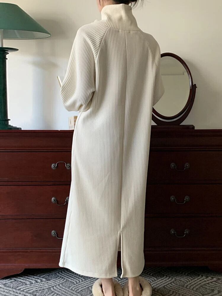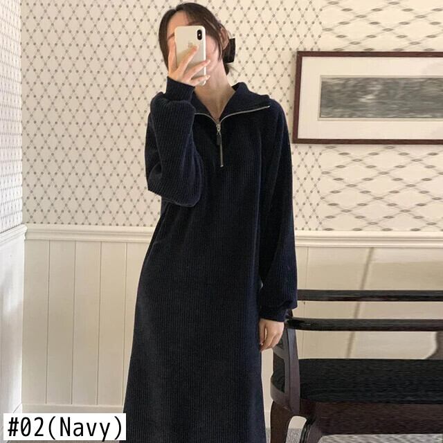 [EWQ] シックベージュタートルネック気質ストライプルーズバブルスリーブニットドレス秋冬 U6190 オータム 秋物 ウィンター 冬物