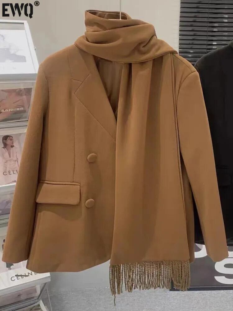 [EWQ] ダブルブレストウールスカーフテルルーズ婦人スーツブレザーコートジャケット秋冬 16U6160 オータム 秋物 ウィンター 冬物
