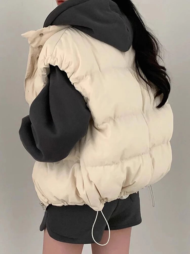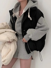 [EWQ] オールマッチスタンドネックジッパー綿パッド入りベストコートシングルブレストポケットジャケット秋冬 16U6262 コットン オータム 秋物 ウィンター 冬物