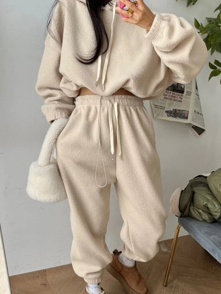 【EWQ】巾着 プルオーバー パーカー トレーナー ウエストゴム ワイドレッグ パンツ 2枚セット 秋冬 U6394 エラスティック 伸縮 オータム 秋物 ウィンター 冬物 ワイドパンツ