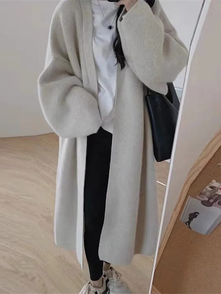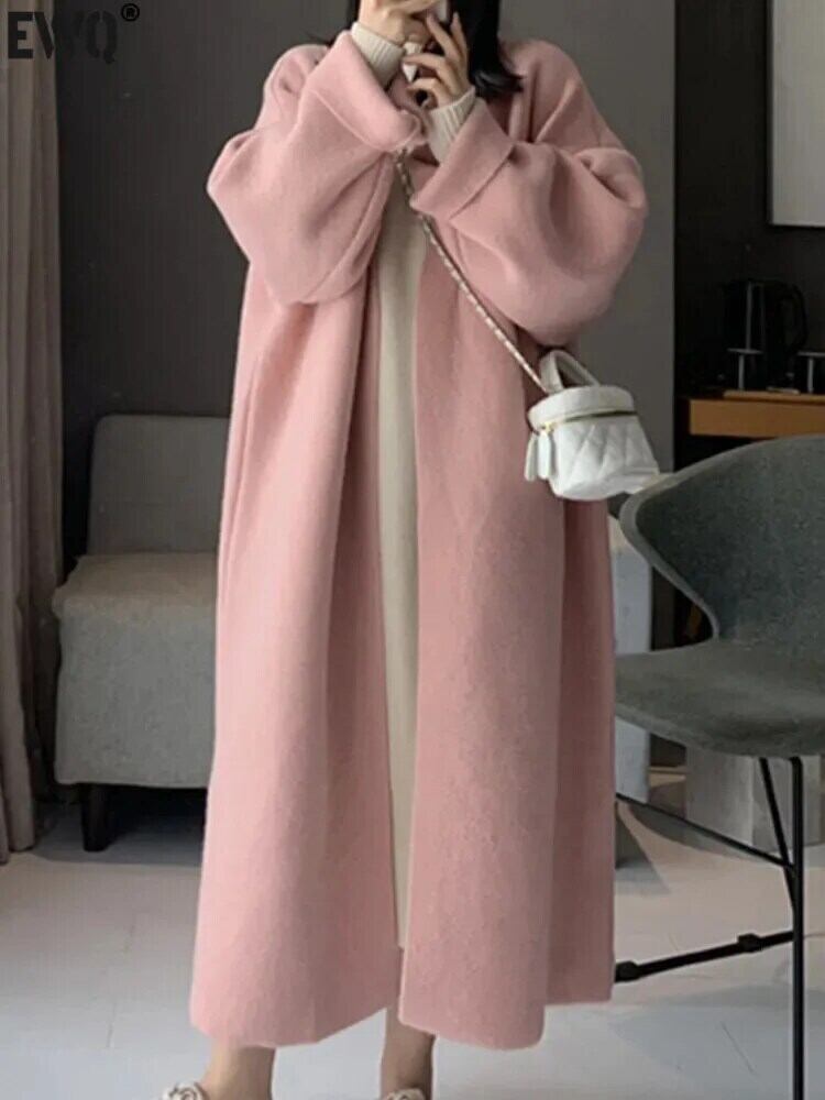 [EWQ] スイート ルーズ ピンク カーディガン コート ウォメ 長袖 ビッグサイズ 丈 セーター ジャケット 秋冬 潮上着 16U321 ロング 大人ガーリー スウィート キュート カジュアル オータム 秋物 ウィンター 冬物