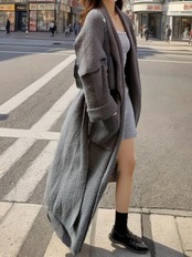 [EWQ] ビッグラペル長袖レースアップベルトポケット厚く暖かいカーディガンニットスリムセーターオーバーコート秋冬 16U5930 ロング オータム 秋物 ウィンター 冬物 ハーネス