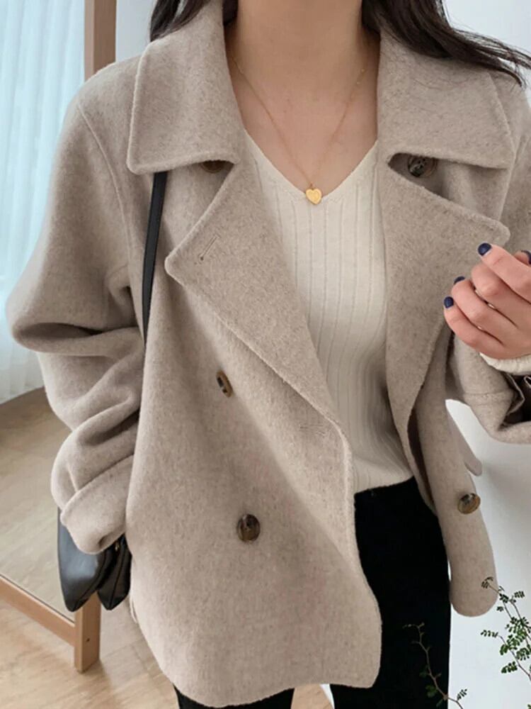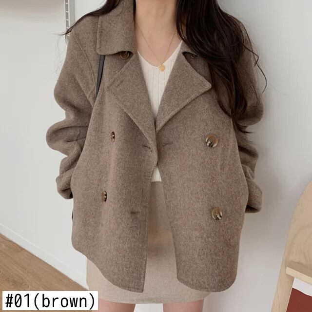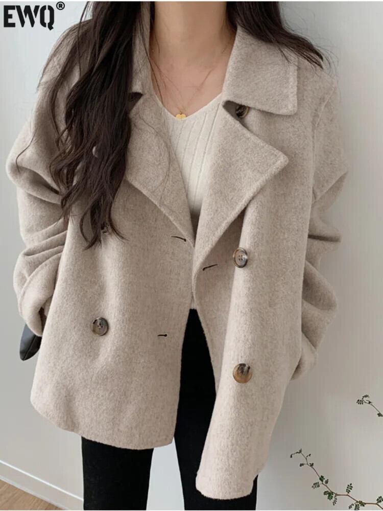 [EWQ] ノッチダブルブレスト長袖ウールコート秋冬オーバーコートルーズウールジャケットA2384 ロング オータム 秋物 ウィンター 冬物