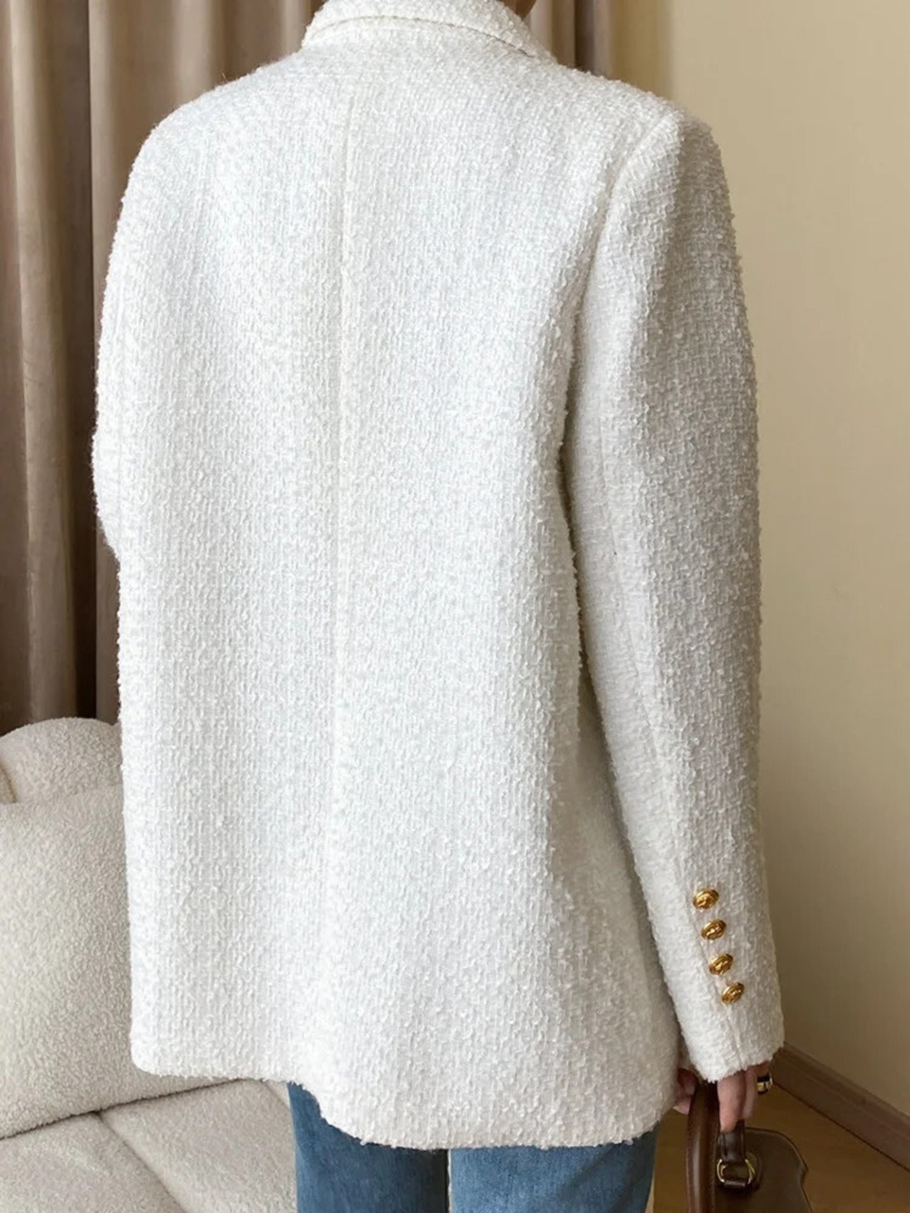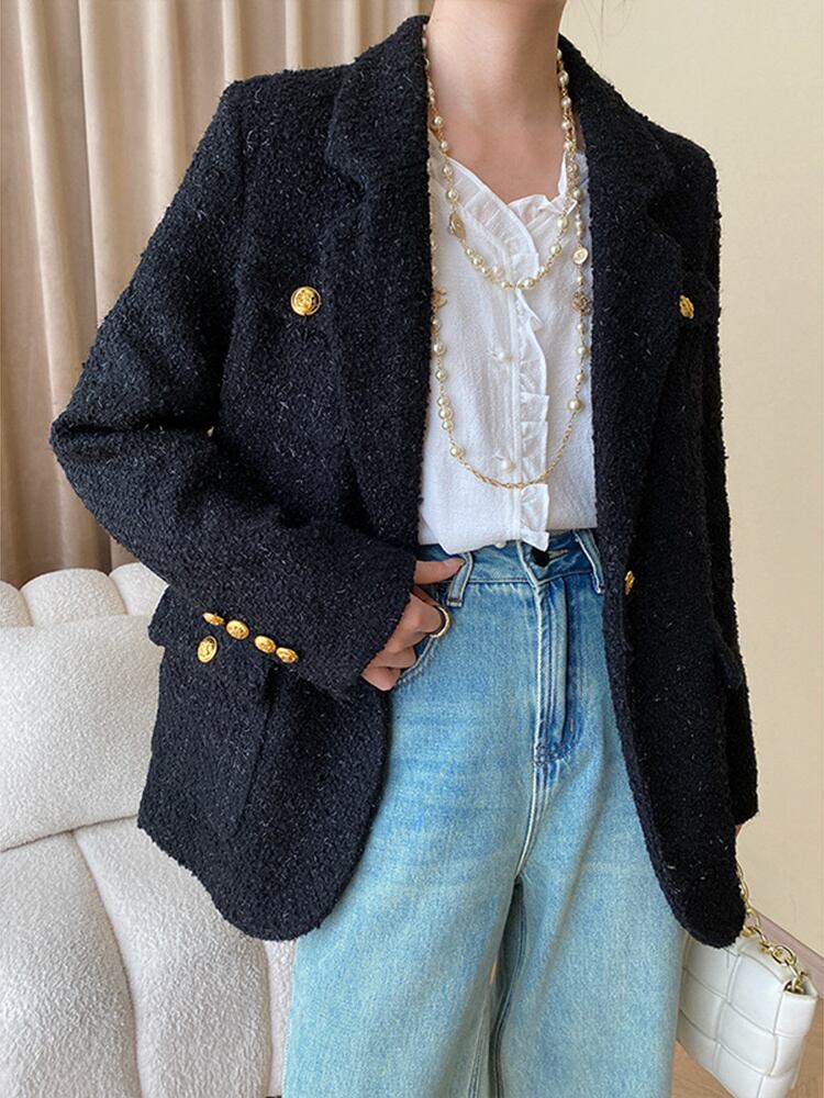 [EWQ] ツイードジャケット レディース 長袖 ボタン飾り丈ジャケット 秋潮 シングルブレストコート ロング オータム 秋物