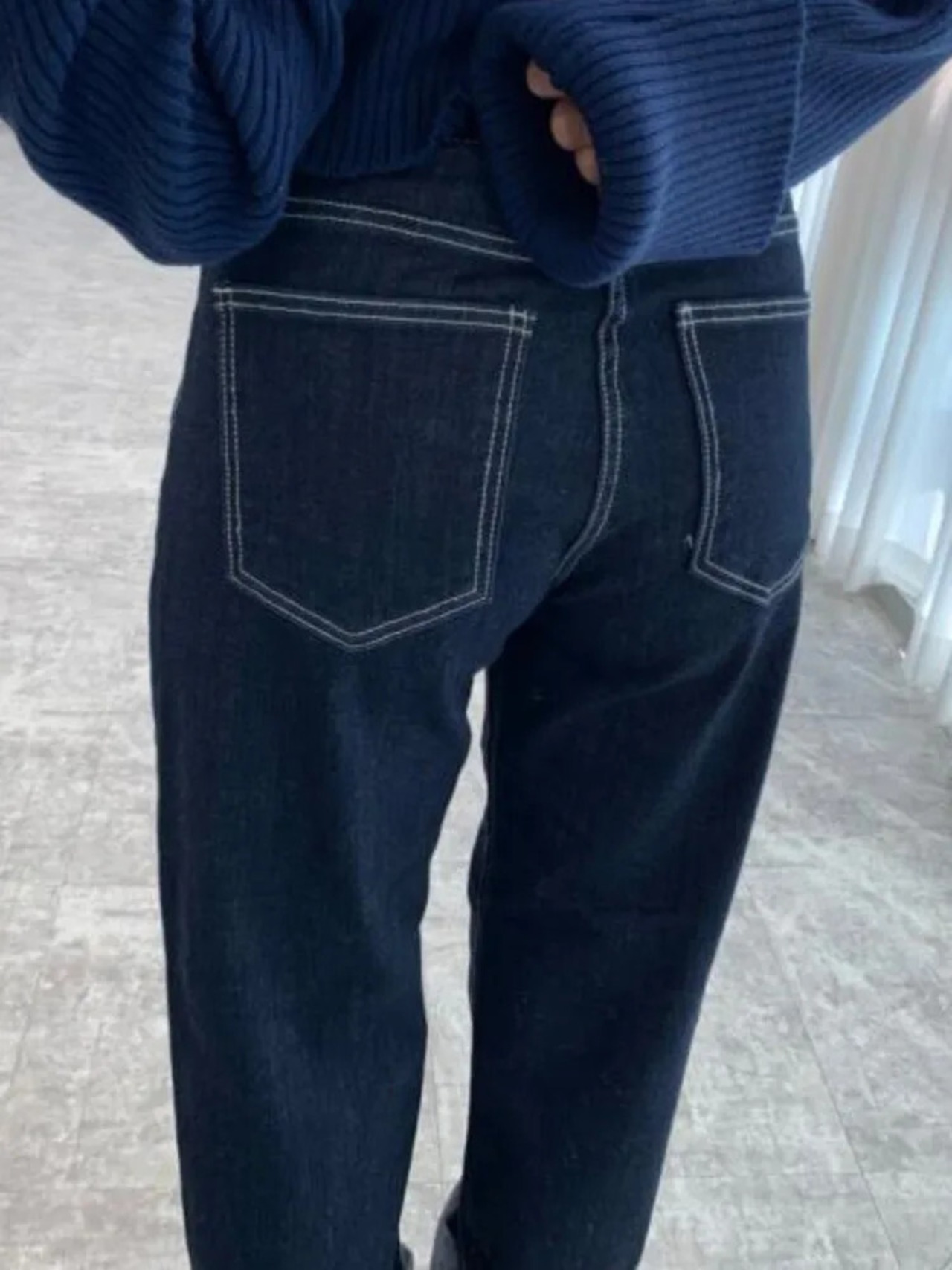 【EWQ】ライン飾りウエスト総合わせボタン大ポケットストレートワイドレッグジーンズパンツ秋ズボン春U6197 スプリング 春物 オータム 秋物 ワイドパンツ
