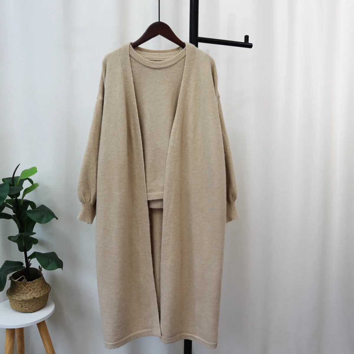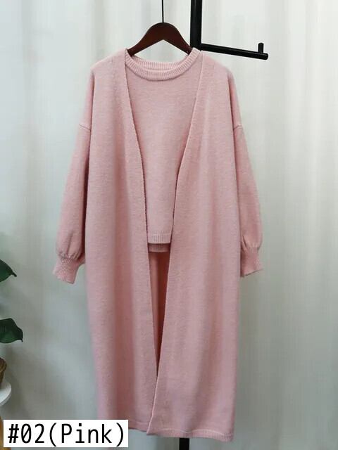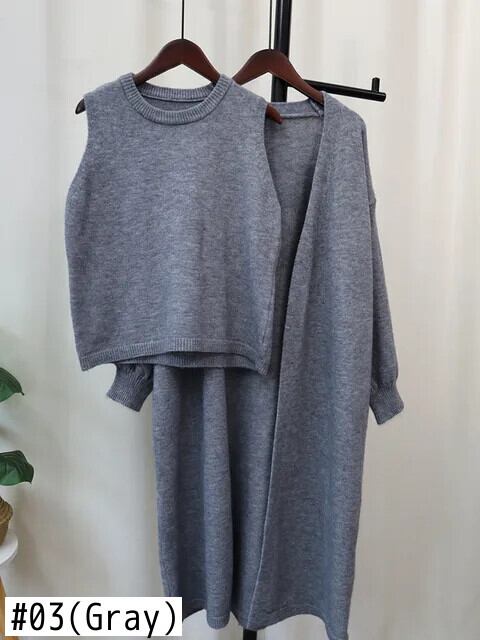[EWQ] シンプル O ネック レディース カーディガン ニット セーター タンクトップ ベスト オーバーコート 2 点セット 秋冬 16U5997 オータム 秋物 ウィンター 冬物 Oネック