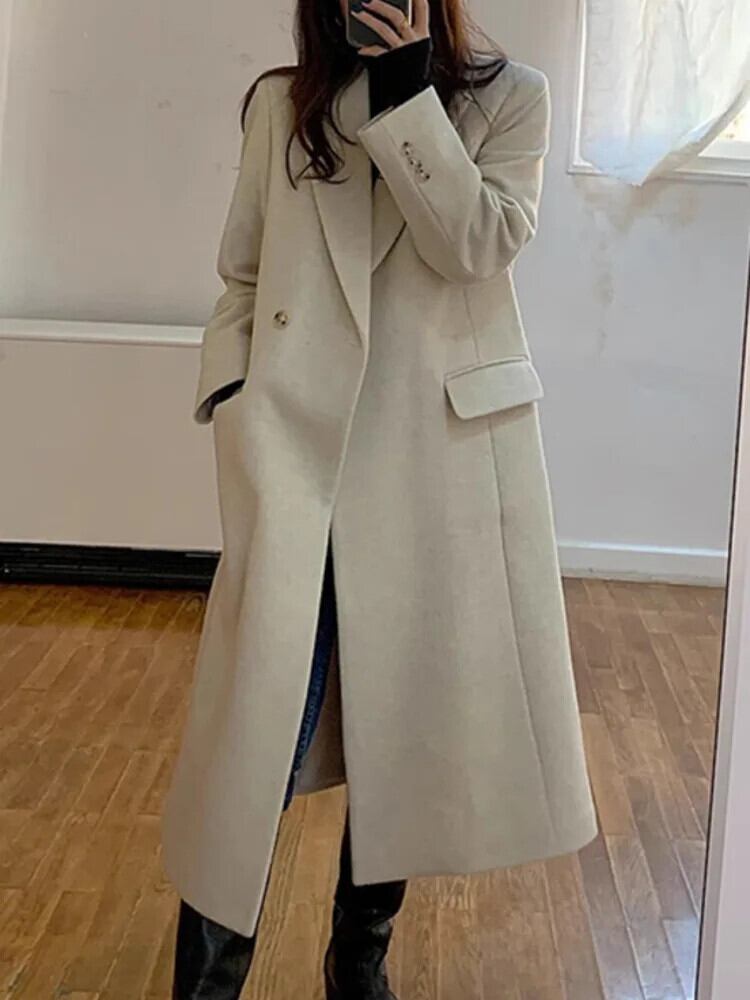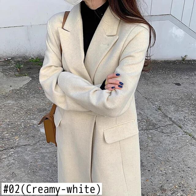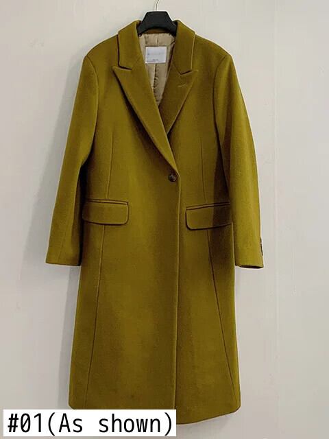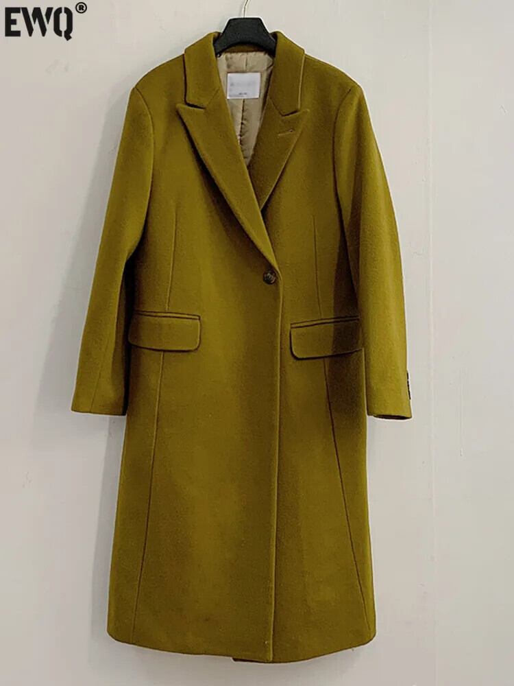 [EWQ] 長袖ウールジャケット秋冬厚手グリーンシックノッチポケットウールコート U4247 ロング オータム 秋物 ウィンター 冬物