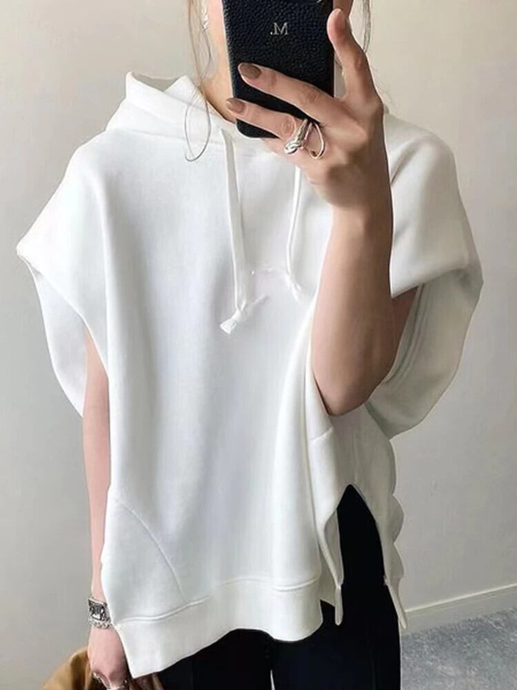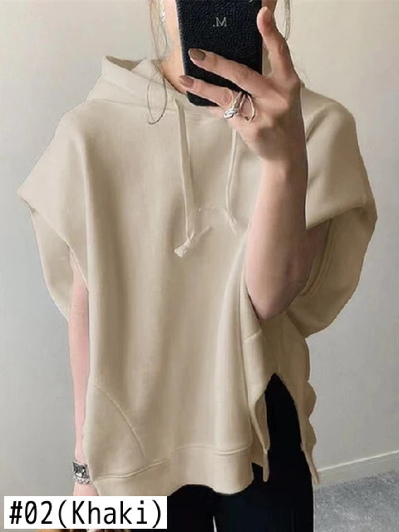 [EWQ] ホット販売シンプル春と秋ストリートトップノースリーブソリッドカラープルオーバーフード付き 16U5461 スプリング 春物 オータム 秋物