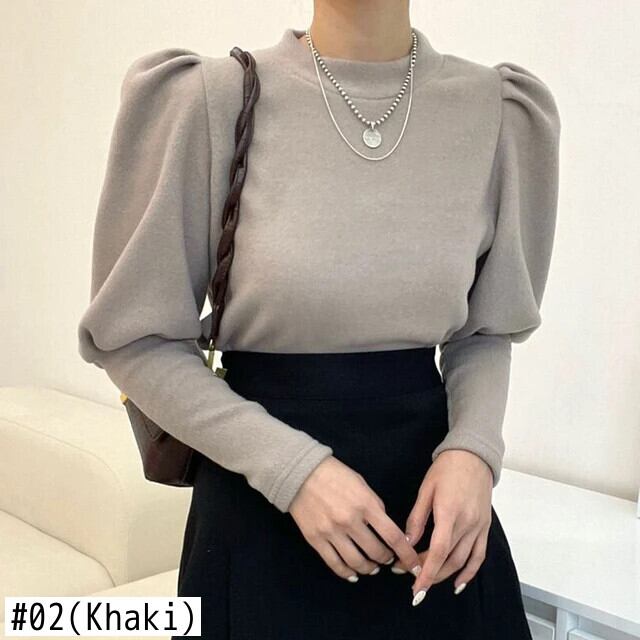 [EWQ] 半襟 アプリコット カーキ スウェット レディース 長袖 スリム プルオーバー トップス 秋冬 16U5145 ロング シャツ オータム 秋物 ウィンター 冬物