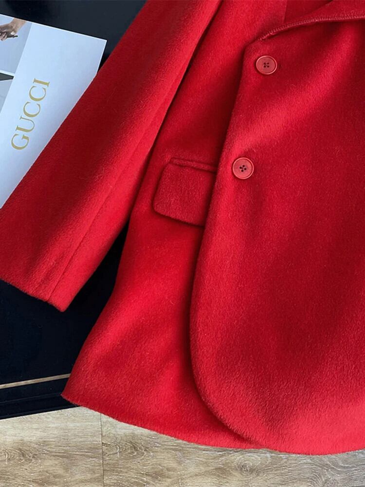 [EWQ] レッドブレザーノッチシングルブレストロングコート OL オフィスレディスーツジャケット秋冬美しい 23A491 オータム 秋物 ウィンター 冬物 会社 学校 通勤や通学にも