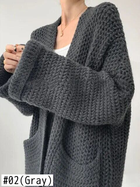 [EWQ] ピンク グレー ベージュ ゆったり 甘い 柔らかい 厚手 レディース ロング ニット 暖かい カーディガン セーター コート アウター 秋冬 6U6108 大人ガーリー スウィート キュート カジュアル オータム 秋物 ウィンター 冬物