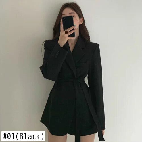 [EWQ] 春フレンチスーツカラージャケット 2 バックルレースアップウエスト薄型ダブルポケットゆったりブレザー 16Y92 スプリング 春物