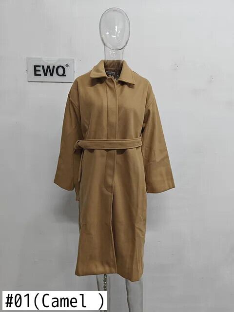 [EWQ] ラペル シングルブレスト ポケット ウエストベルト スリム 長袖 カーディガン オーバーコート アウター ジャケット 秋冬 16U5868 ロング オータム 秋物 ウィンター 冬物 ハーネス