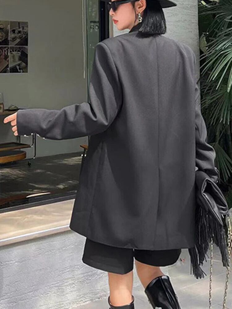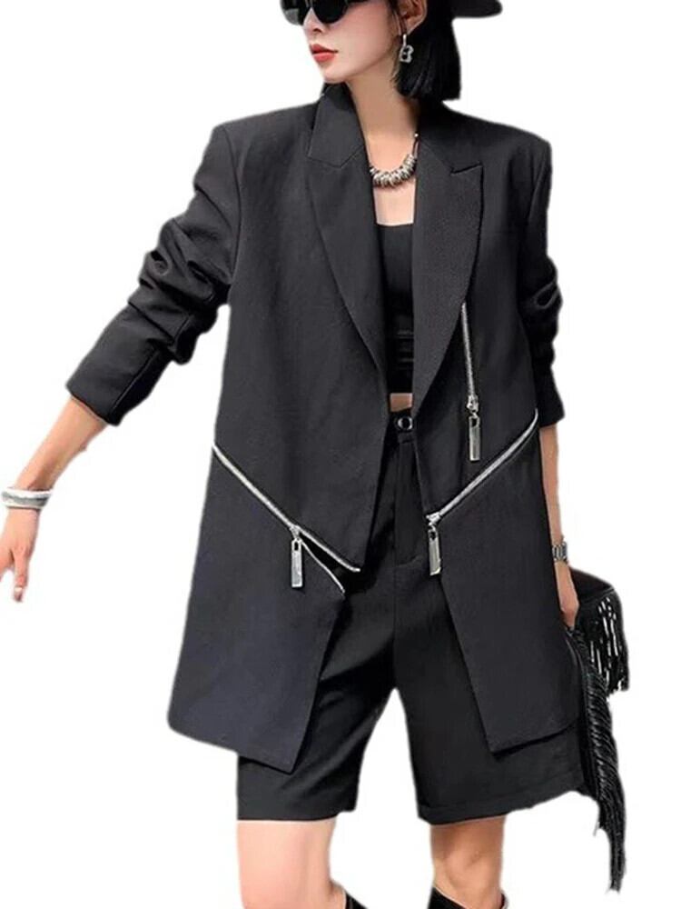 [EWQ] ブラックマルチジッパースーツジャケット気質長袖ブレザーコートトップ秋冬 16U6248 ロング オータム 秋物 ウィンター 冬物