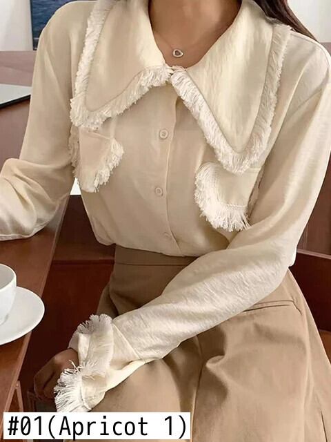 [EWQ] シックバリドラペル シングルブレスト アプリコット 長袖ブラウス ルーズシックシャツ 秋冬 16U5678 ロング オータム 秋物 ウィンター 冬物