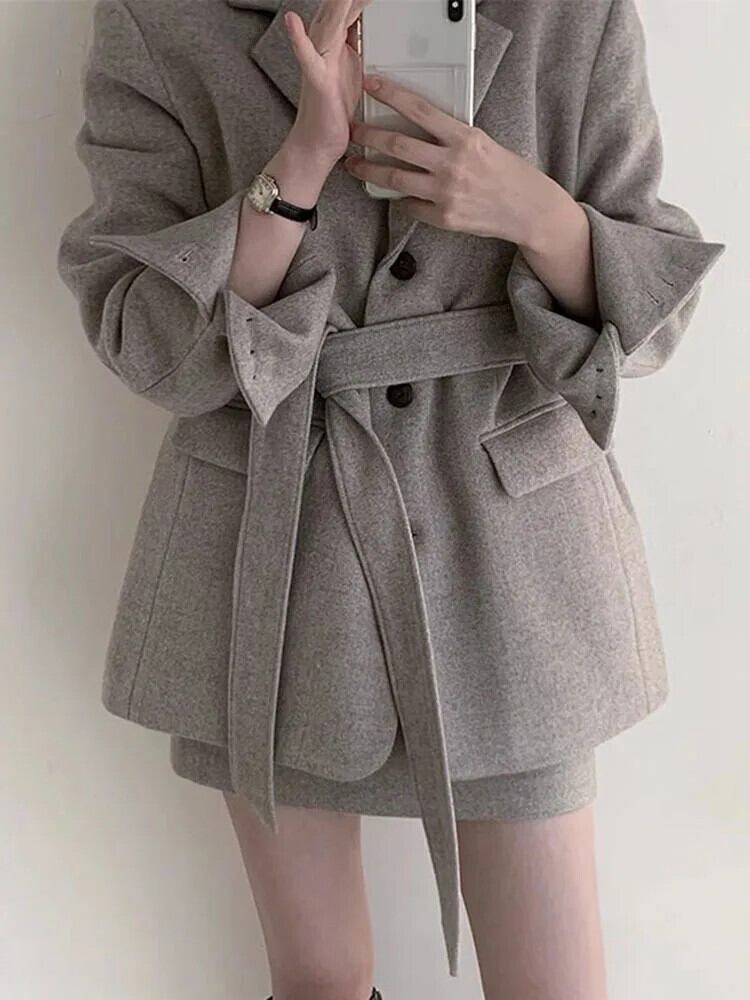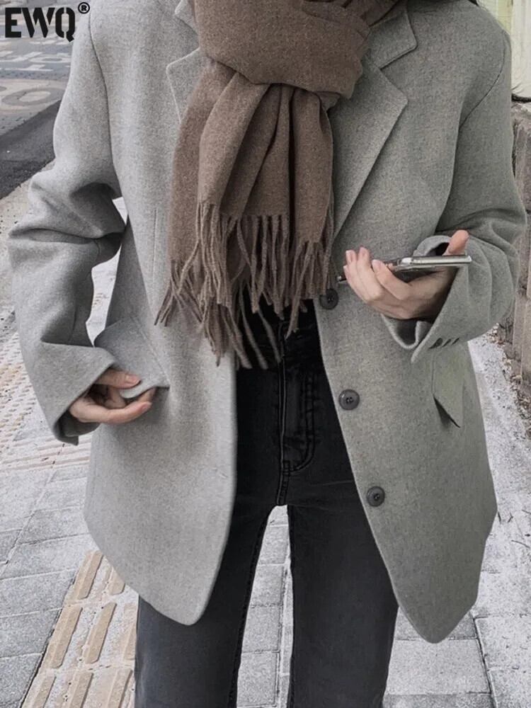 [EWQ] 長袖シングルブレスレッド綿厚みあるレディーススーツオフィスレディブレザーコートジャケットアウター秋冬 U612 ロング コットン オータム 秋物 ウィンター 冬物 会社 学校 通勤や通学にも